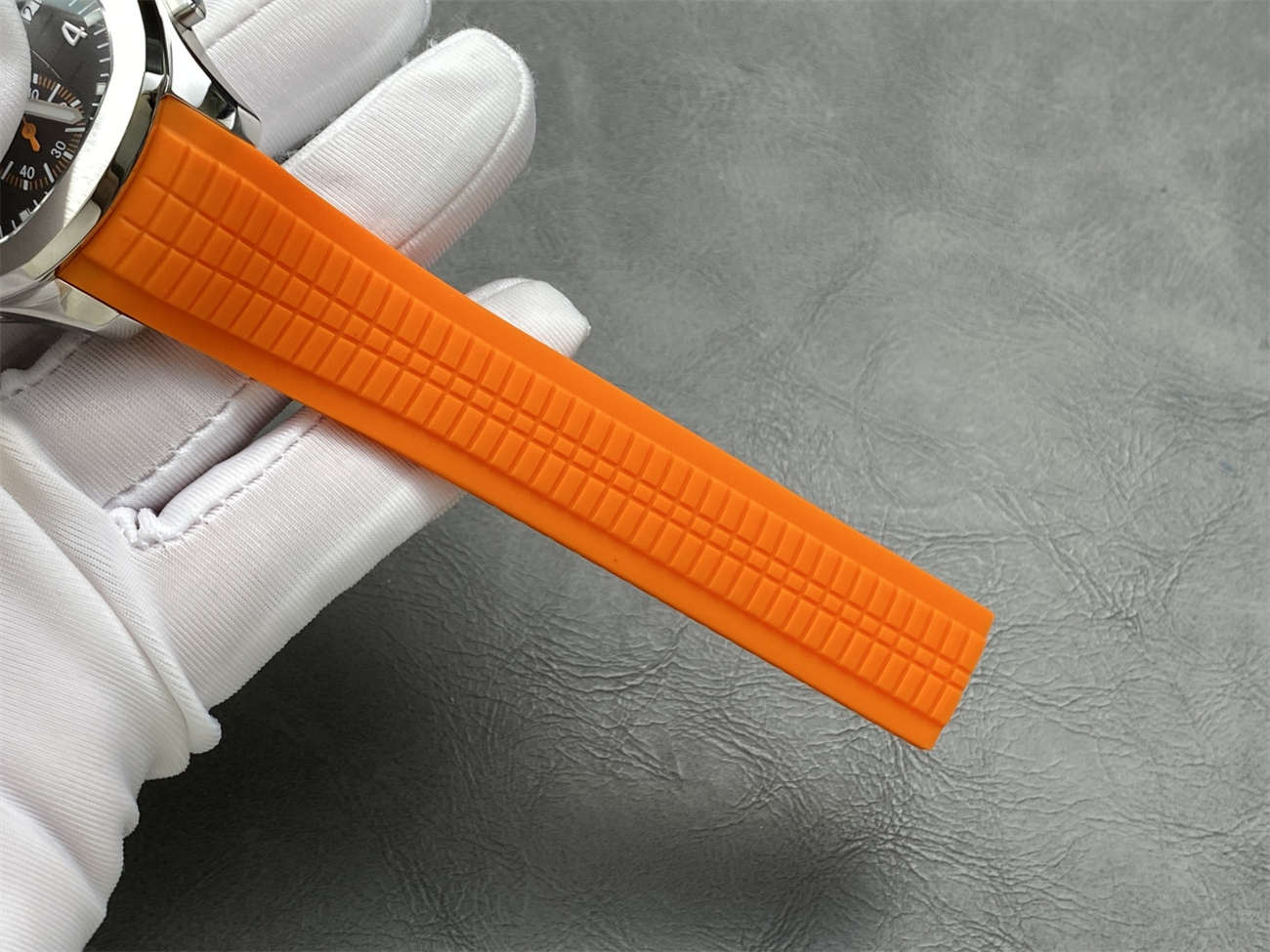 The rubber strap is soft, durable, and very comfortable for daily wear, similar to the genuine Aquanaut tropical strap.