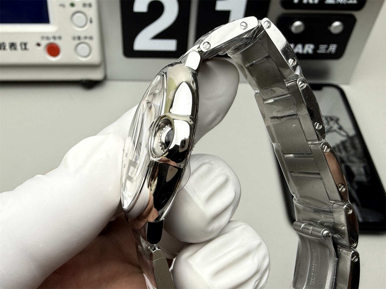 AF Factory is known for its bracelet finishing. The links are a mix of brushed and polished steel, creating a jewelry-like shine. The joints are flexible and smooth, ensuring it won’t pinch your skin or pull arm hair.