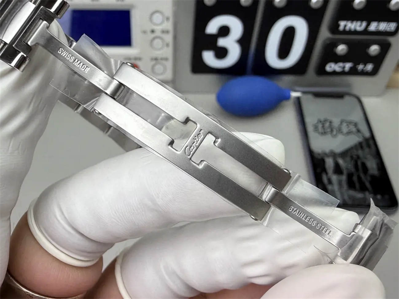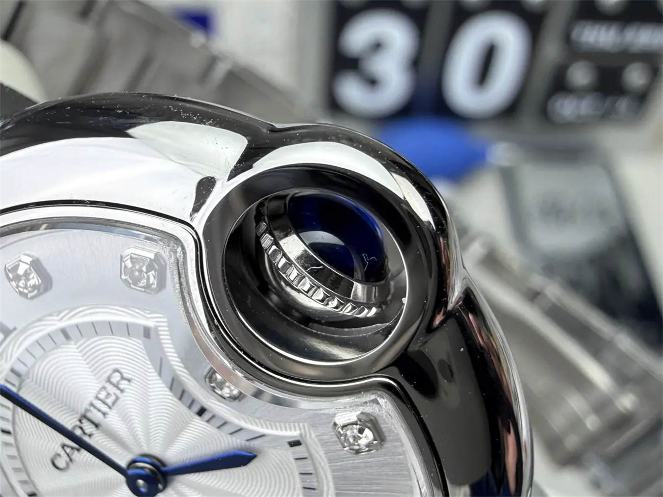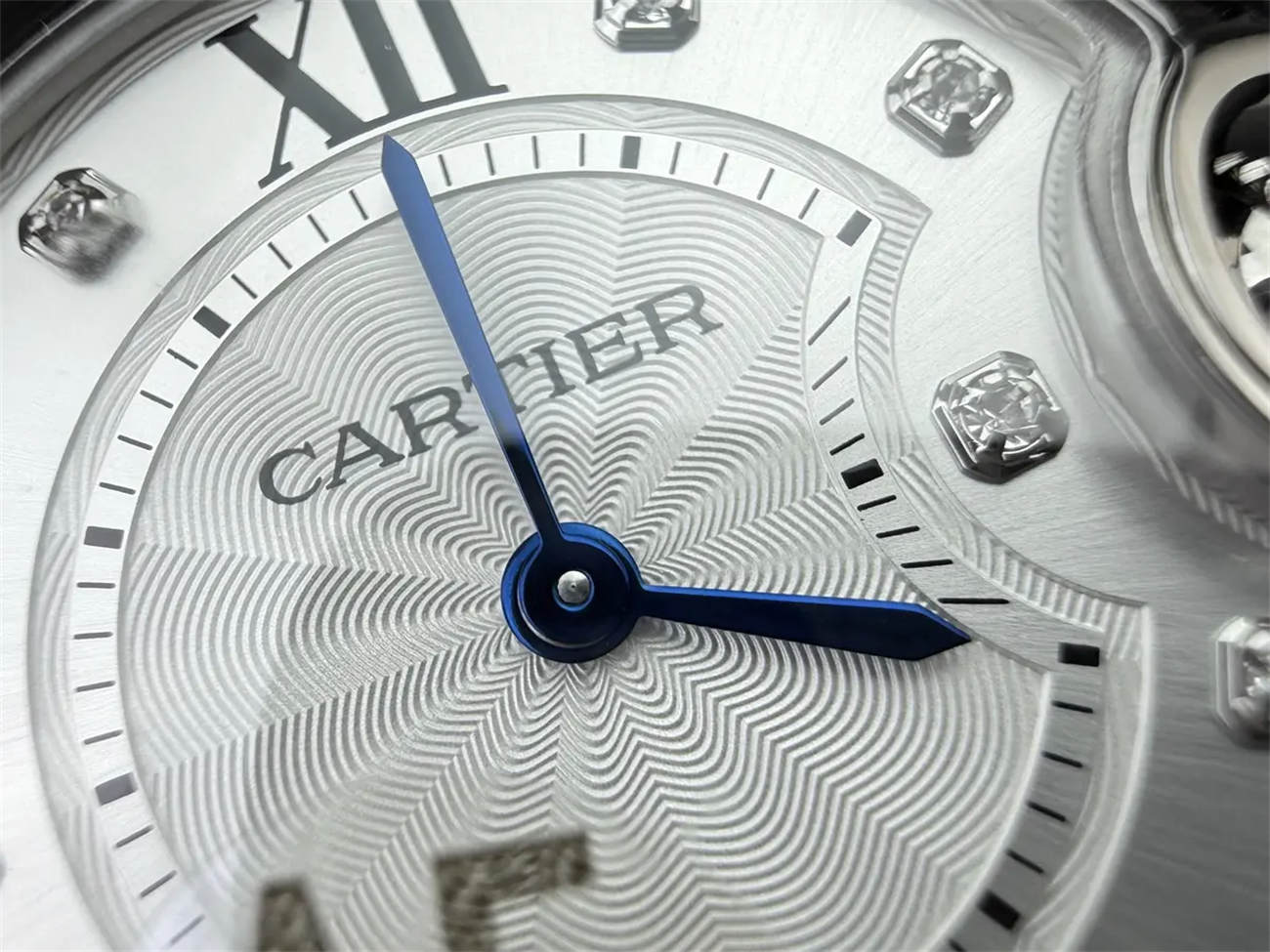 The hands are not painted; they are thermally blued steel. In low light, they look dark; in sunlight, they flash a vibrant cornflower blue. This is a high-end detail found only on the best Cartier Ballon Bleu replicas.
