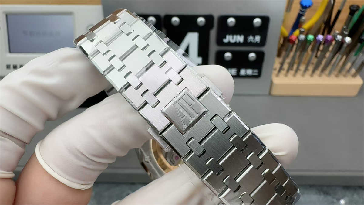 The bracelet of the AP 26240ST Replica is crafted with solid links, smooth articulation, and precise beveling consistent with high-end manufacturing. APS uses high-density 316L stainless steel, giving the watch a strong, premium feel while maintaining comfort for daily wear.