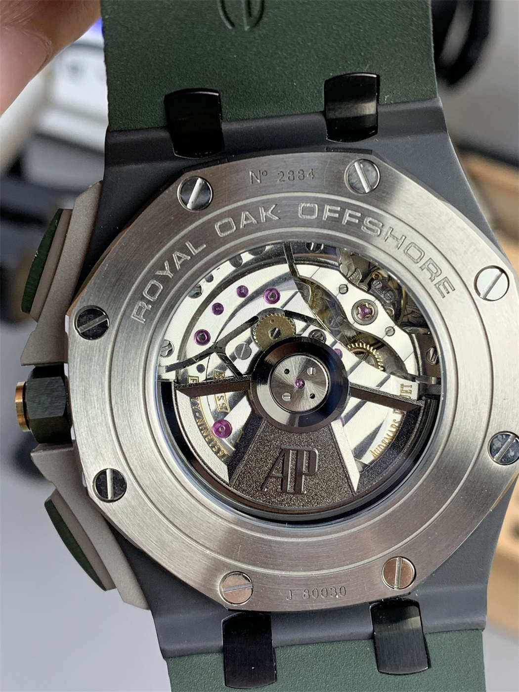 The ap royal oak offshore ceramic replica with green dial is a statement piece.It combines aggressive design, modern materials, and luxury finishing into one of the most recognizable sports chronographs ever made.