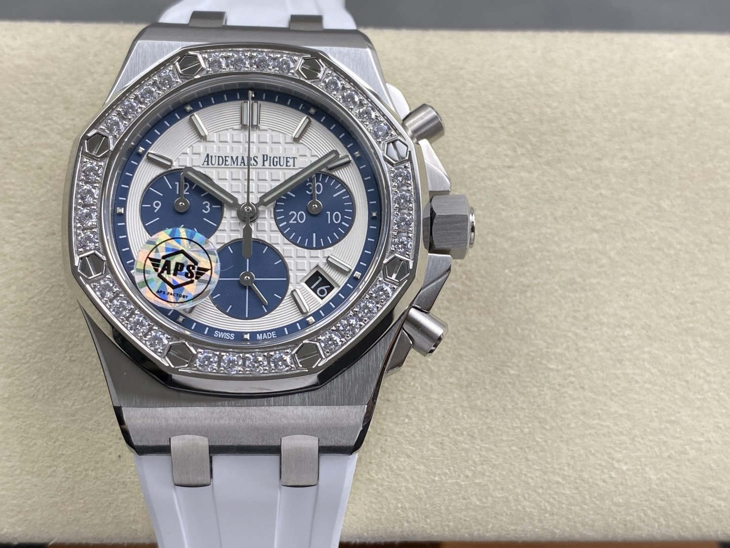 A: Yes, the APS 37mm Royal Oak features a fully functional mechanical chronograph. The large central hand sweeps smoothly when activated, and the sub-dials accurately track elapsed time.
