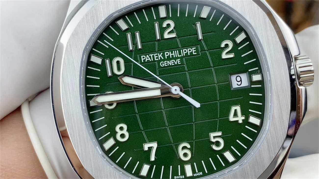 The green dial is the defining feature of the Aquanaut 5168G super clone. The latest version improves both color accuracy and texture depth.