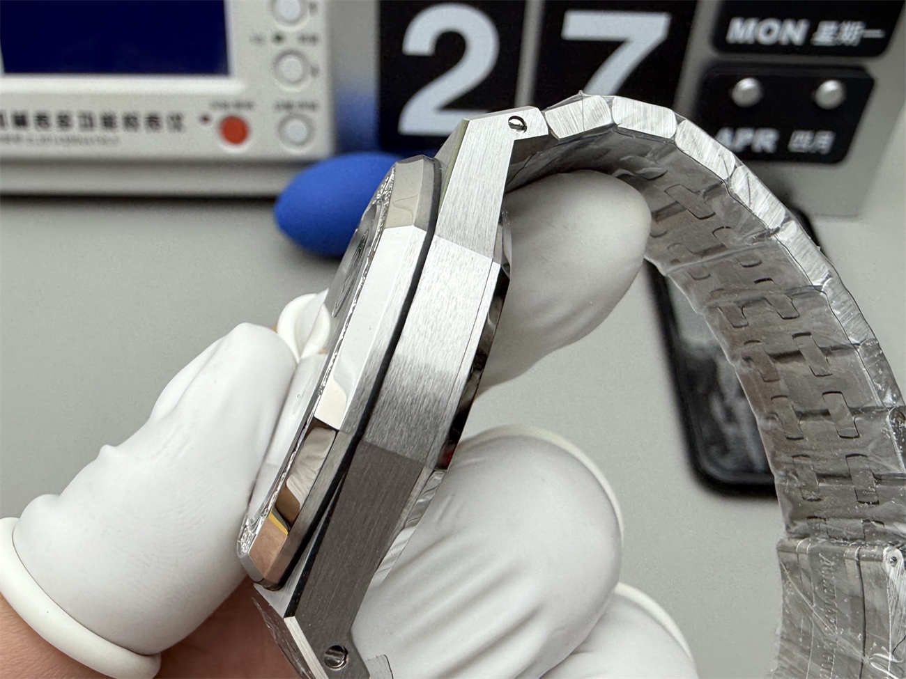 A defining highlight of the Audemars Piguet 15451 is its beautiful blue Grande Tapisserie dial. The texture, tone, and depth create a dynamic appearance under different lighting conditions.