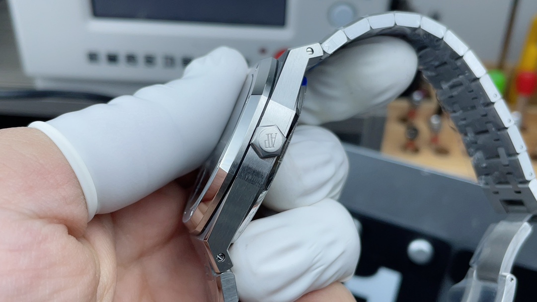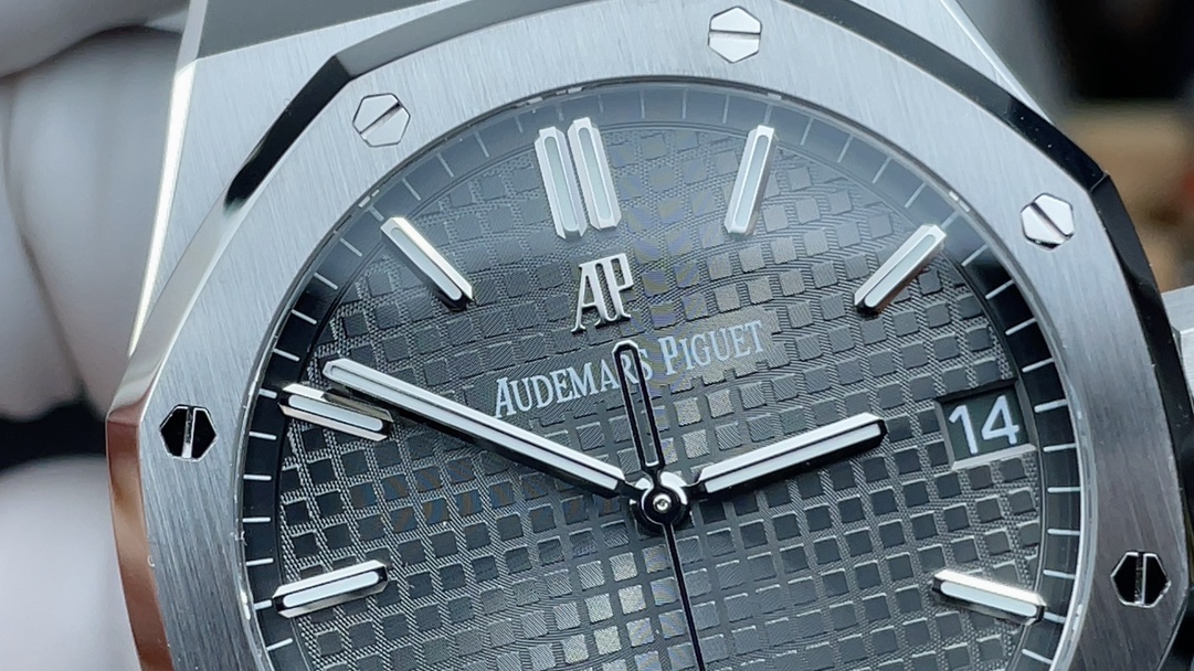 Bezel: The signature octagonal bezel with exposed screws — emblematic of the Royal Oak legacy.