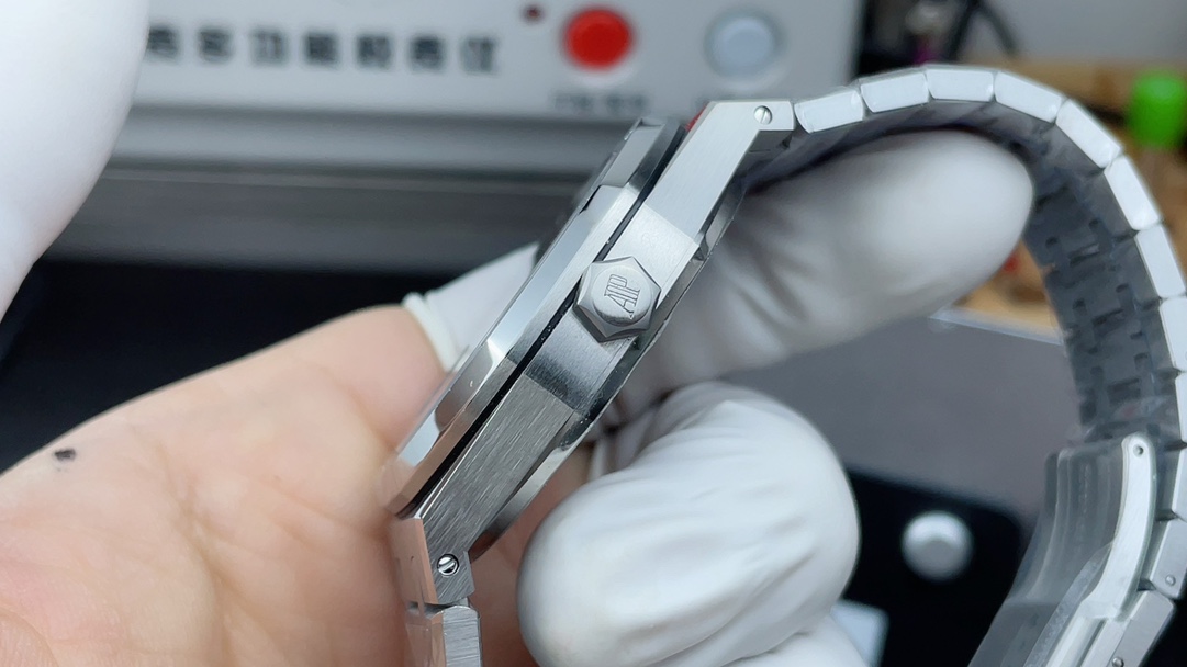 The Audemars Piguet 15510 Blue inherits the legendary octagonal bezel with eight visible screws, the sharply brushed surfaces, and polished beveled edges — traits that defined the Royal Oak since its inception. The 41 mm case size strikes a balance: bold enough for a masculine presence, yet refined enough for daily wear.