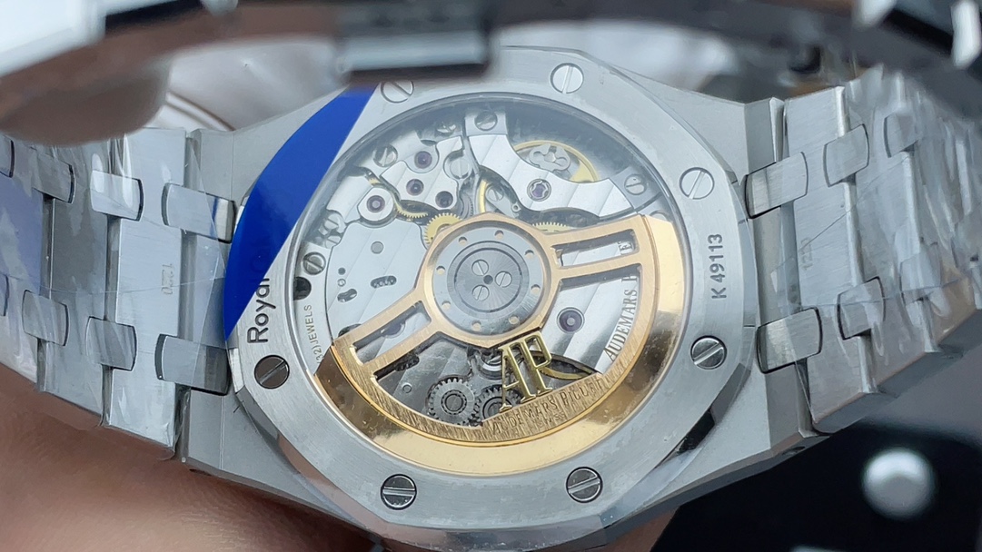 Under the hood, the Cal.4302 automatic movement powers the 15510 with modern precision and reliability. Known for its stability and smooth sweeping seconds, this movement ensures that the watch performs confidently every day. The Sapphire crystal caseback offers a view of the rotor and movement finishing — a subtle nod to horological craftsmanship.