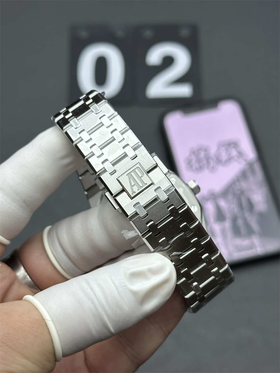 The bracelet remains one of the most recognizable and admired features of the Royal Oak. APS’s finishing achieves fluid transitions between links, smooth brushing, and a comfortable natural wrist curvature.