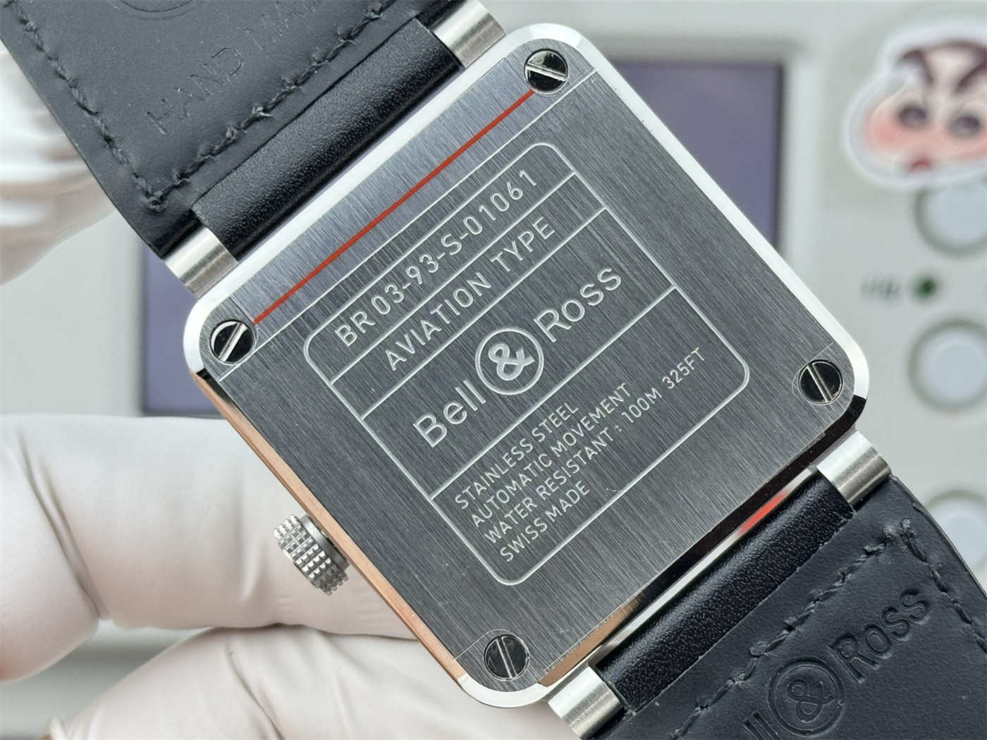 A: Yes. The black calfskin strap features the correct “Hot Stamped” logo and markings, just like the genuine strap.