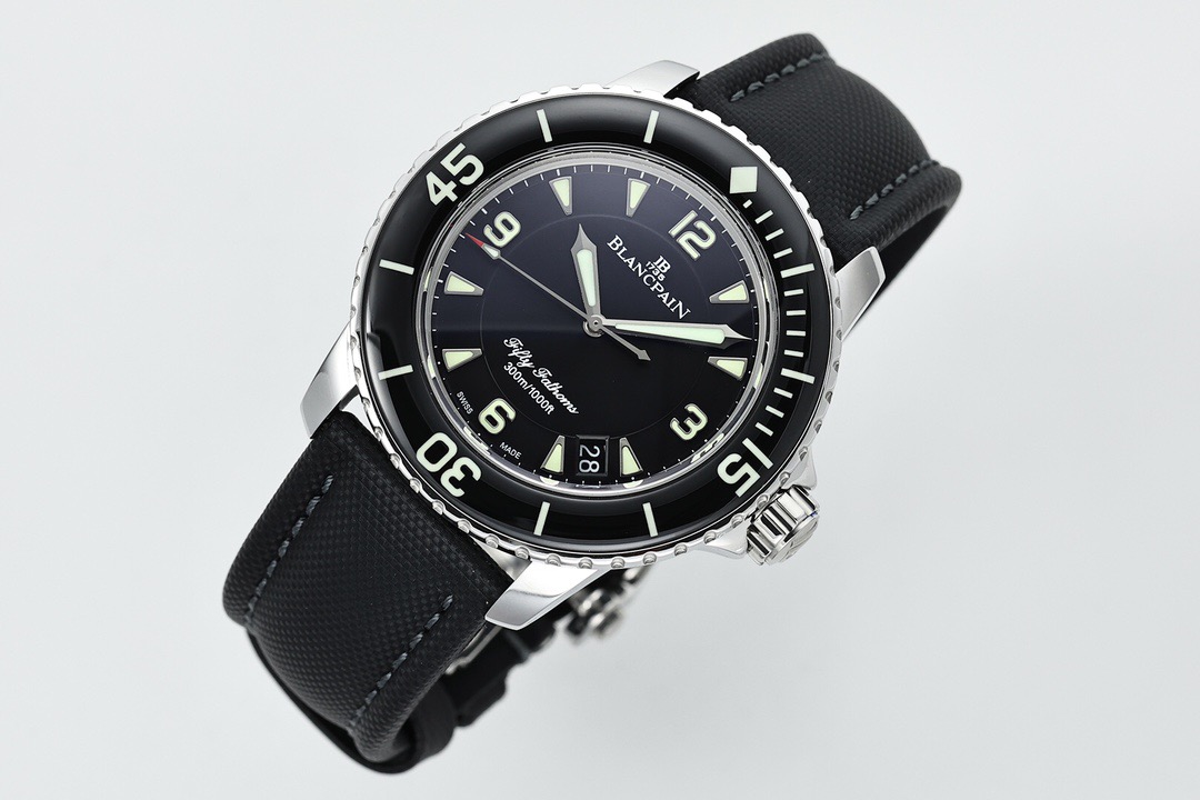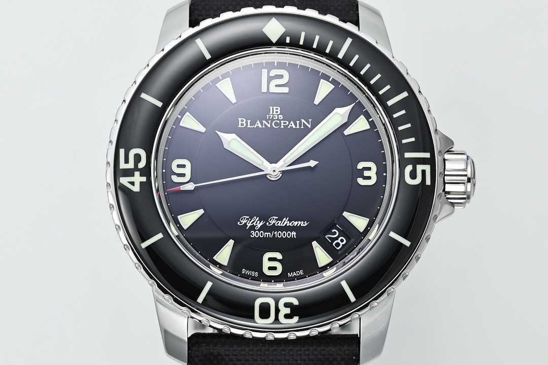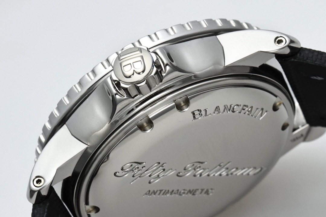 Super-Luminova: The lume color is a specific “Silver-Yellow” in daylight, turning nuclear green in the dark. This subtle color matching is what makes this the Best Blancpain Replica available today.