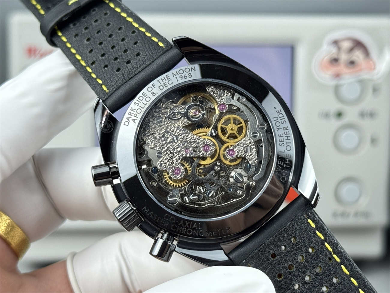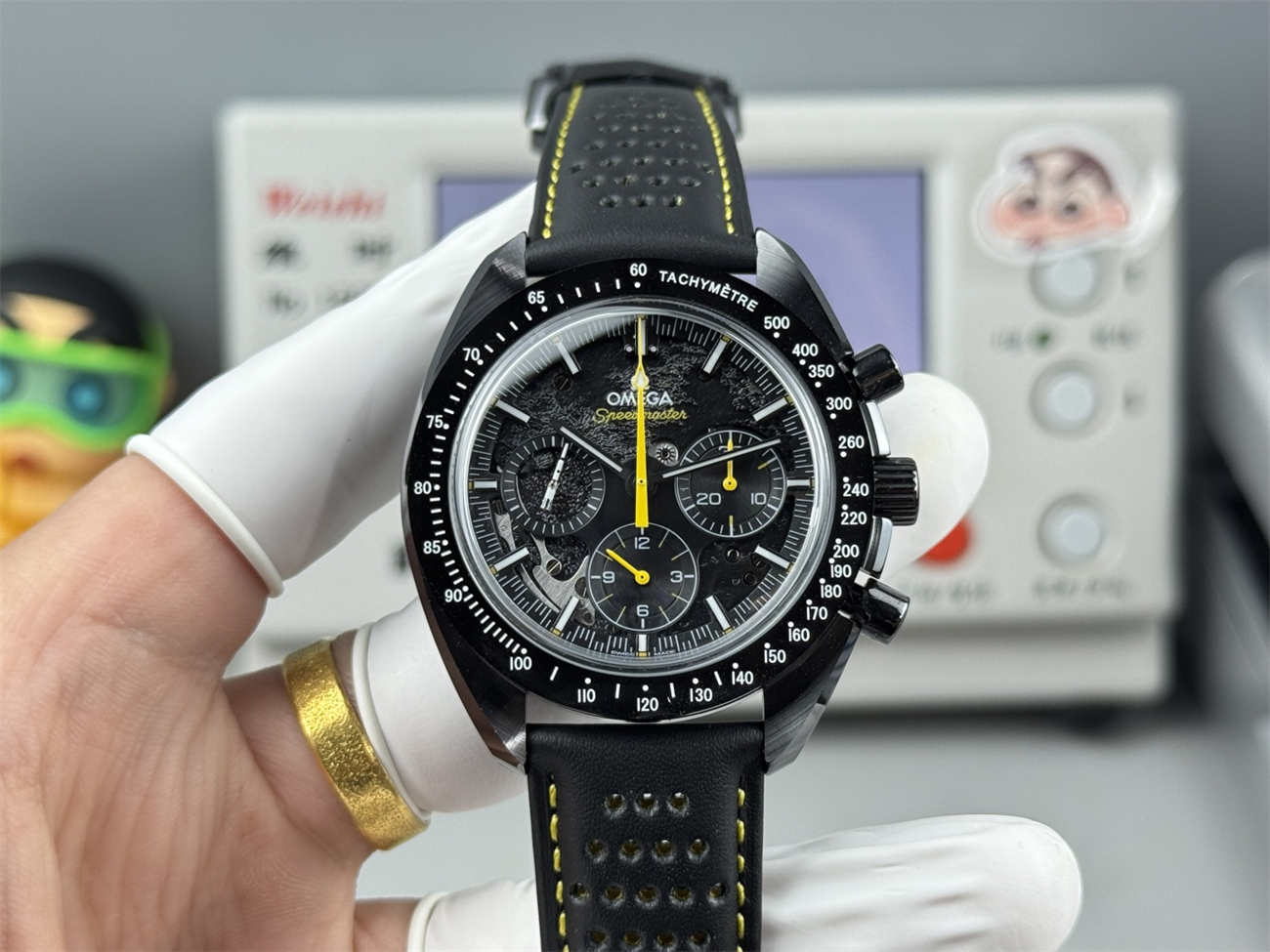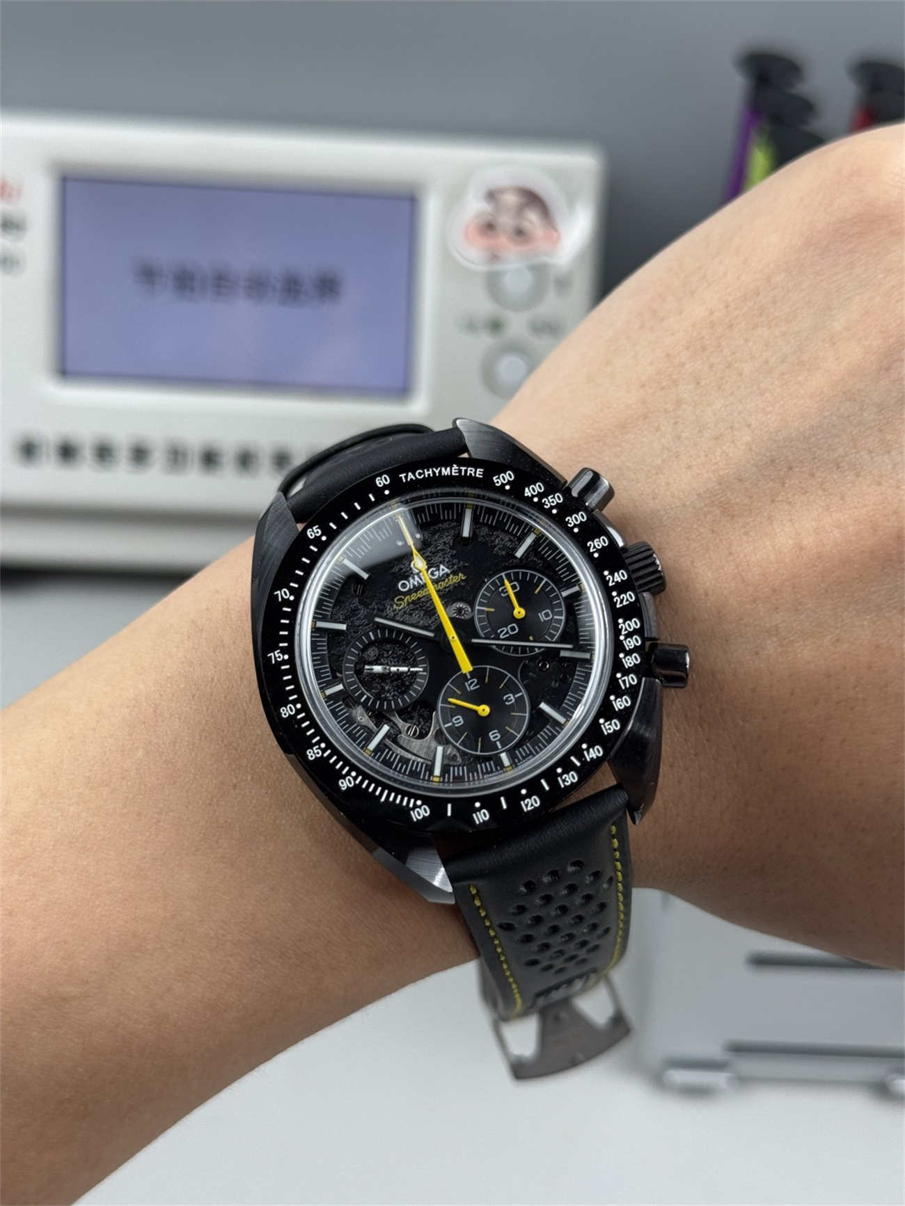Unlike cheap PVD replicas that scratch and show steel underneath, this Omega Speedmaster Apollo 8 replica is made of solid black ceramic. It feels cool on the skin, is hypoallergenic, and will never fade. The bezel numbers are filled with bright white enamel for long-lasting legibility.
