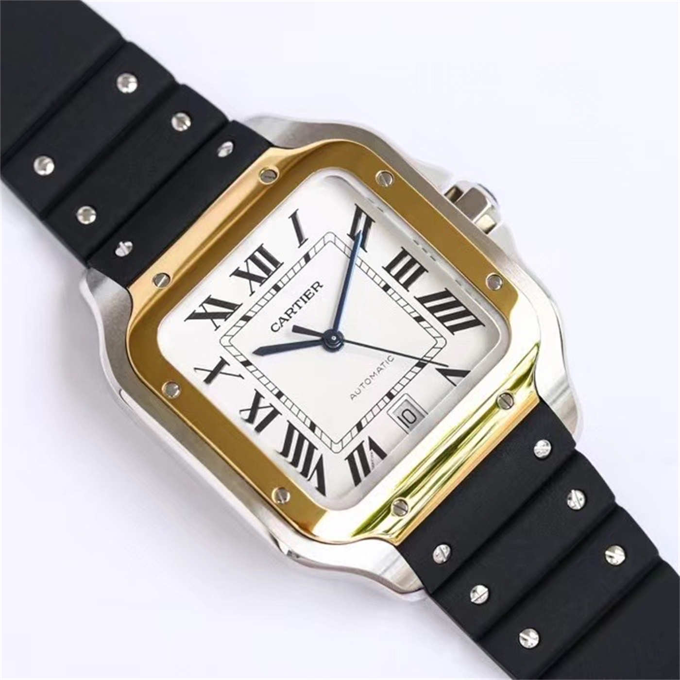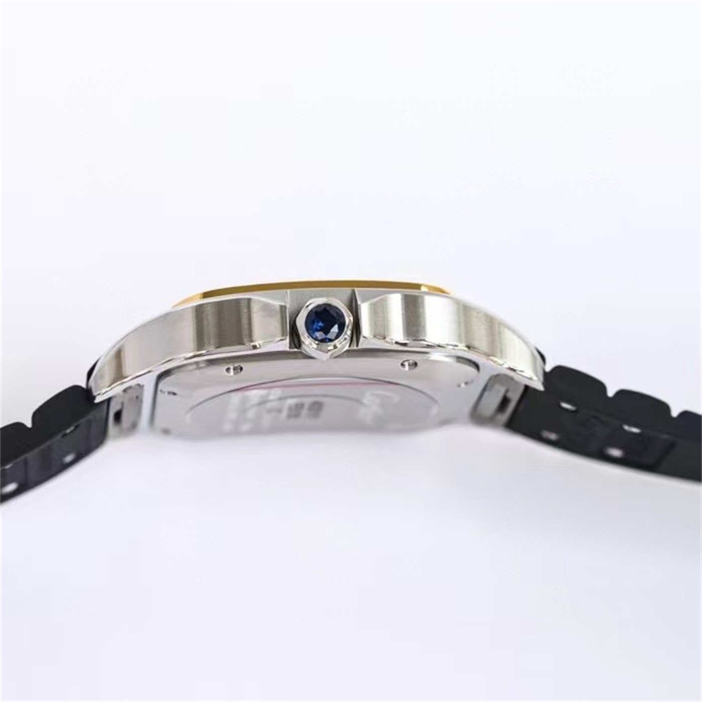 The Cartier Santos Two Tone Rubber Strap Replica bridges the gap between dress watch and sports watch. The gold bezel adds a touch of luxury, while the rubber strap keeps it casual.