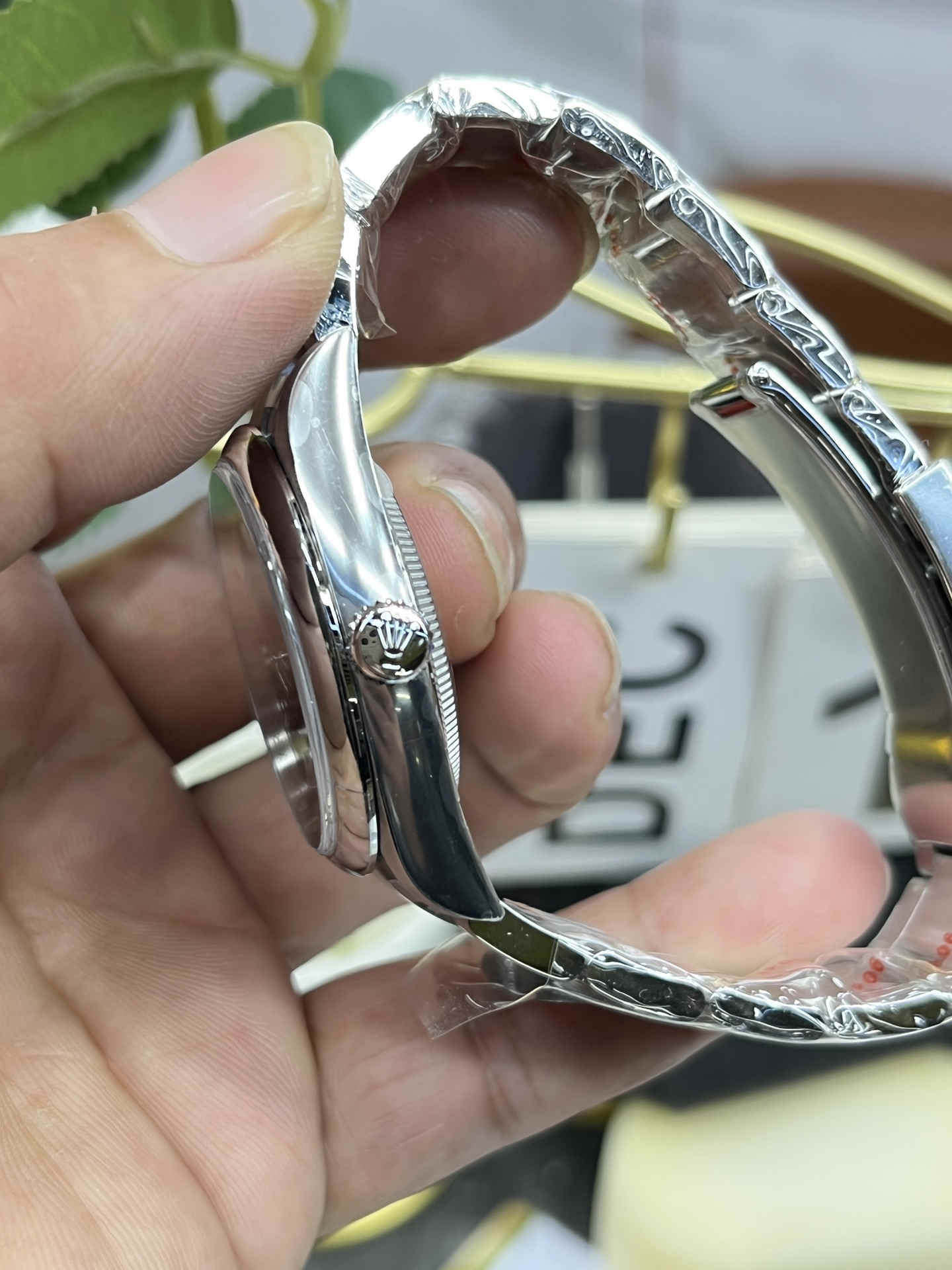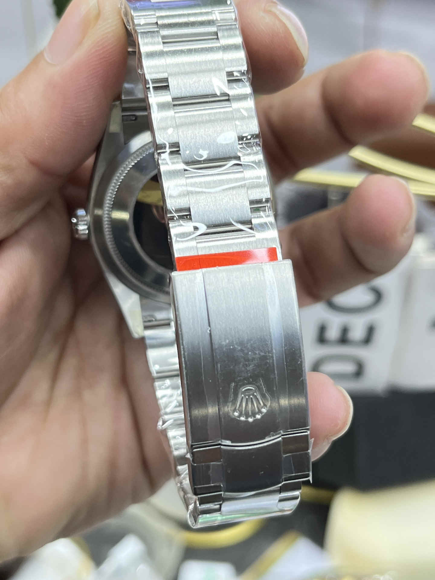 Every index is correctly proportioned, with the same alignment and spacing as the genuine 126000. The black dial gives the watch a versatile, understated aesthetic that matches any outfit — casual, business, or formal.