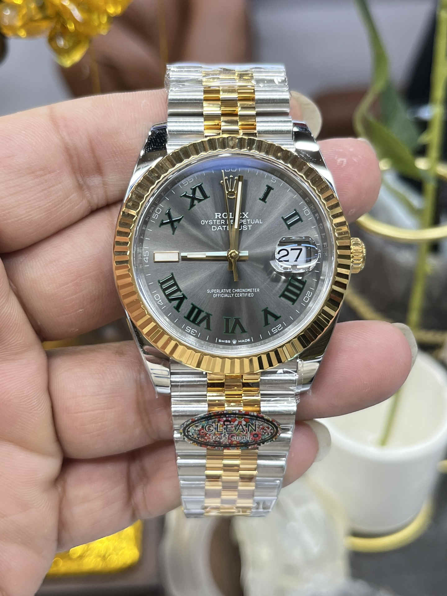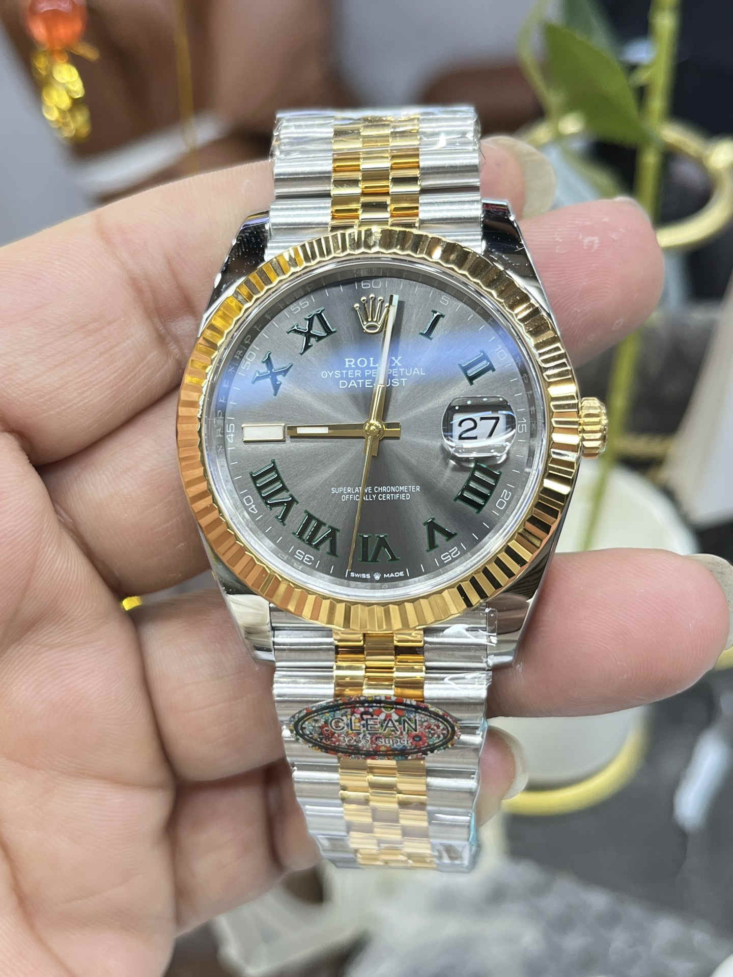 The Clean Factory 126333-0019 is one of the most refined and accurate two-tone Datejust 41 Wimbledon replicas on the market. Crafted with exceptional attention to detail, this model captures the elegance of Rolex’s iconic Wimbledon edition with its slate-grey dial, green Roman numerals, and luxurious two-tone construction. The combination of 904L steel, yellow-gold wrapping, and the distinctive Jubilee bracelet makes it a standout option for collectors who value both style and authenticity.