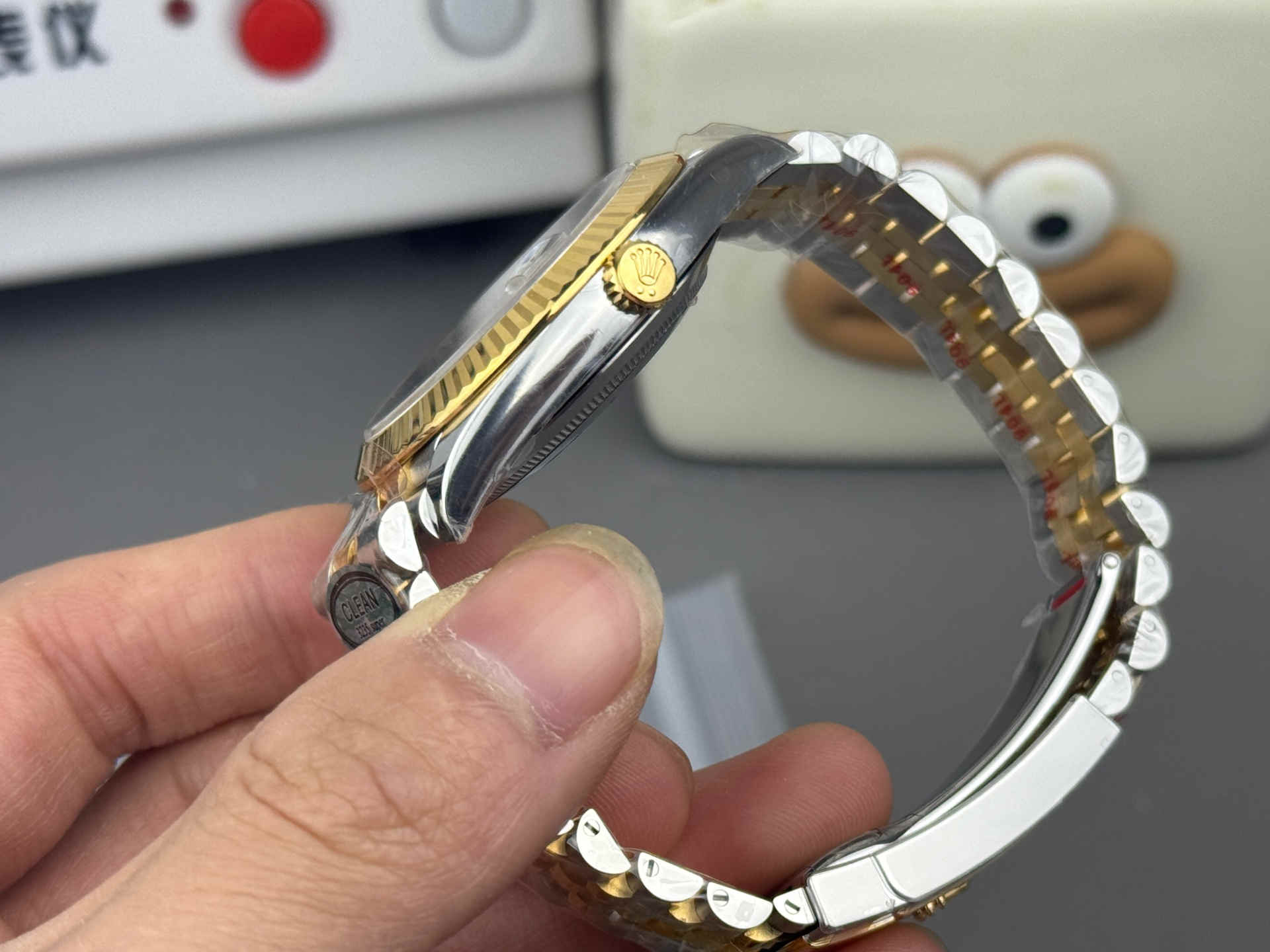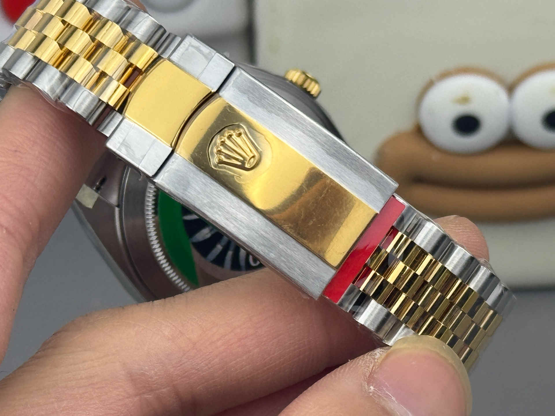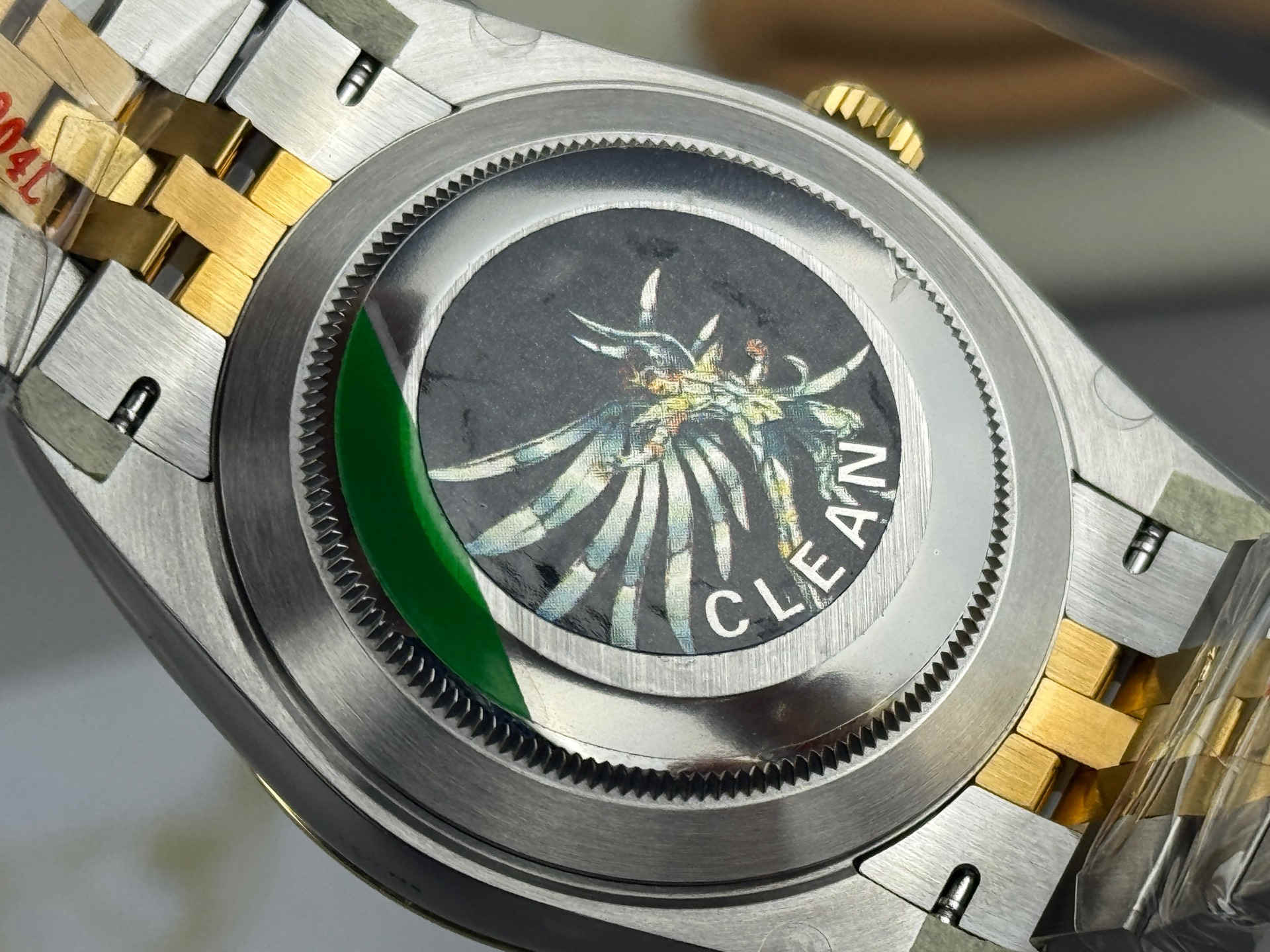 The Clean Factory 126333-0022 uses full 904L stainless steel, matching the same grade as modern Rolex. The gold center links and fluted bezel are wrapped (coated) with 18K yellow gold to deliver a rich tone nearly identical to the genuine model.