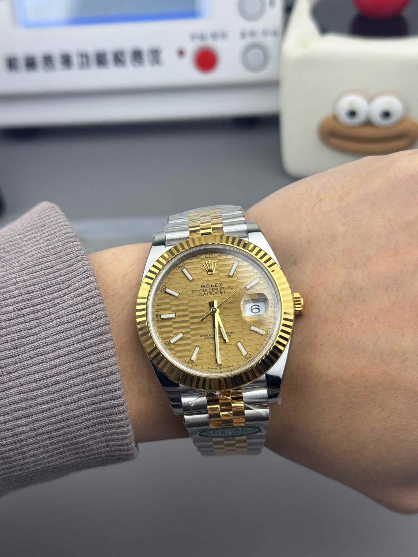 The 41mm size of the Clean Factory 126333-0022 matches the proportions of the genuine Rolex Datejust 41. The curved lugs, polished sides, and brushed surfaces all align with factory-level finishing standards. On the wrist, it offers a perfect blend of modern presence and classic shape.