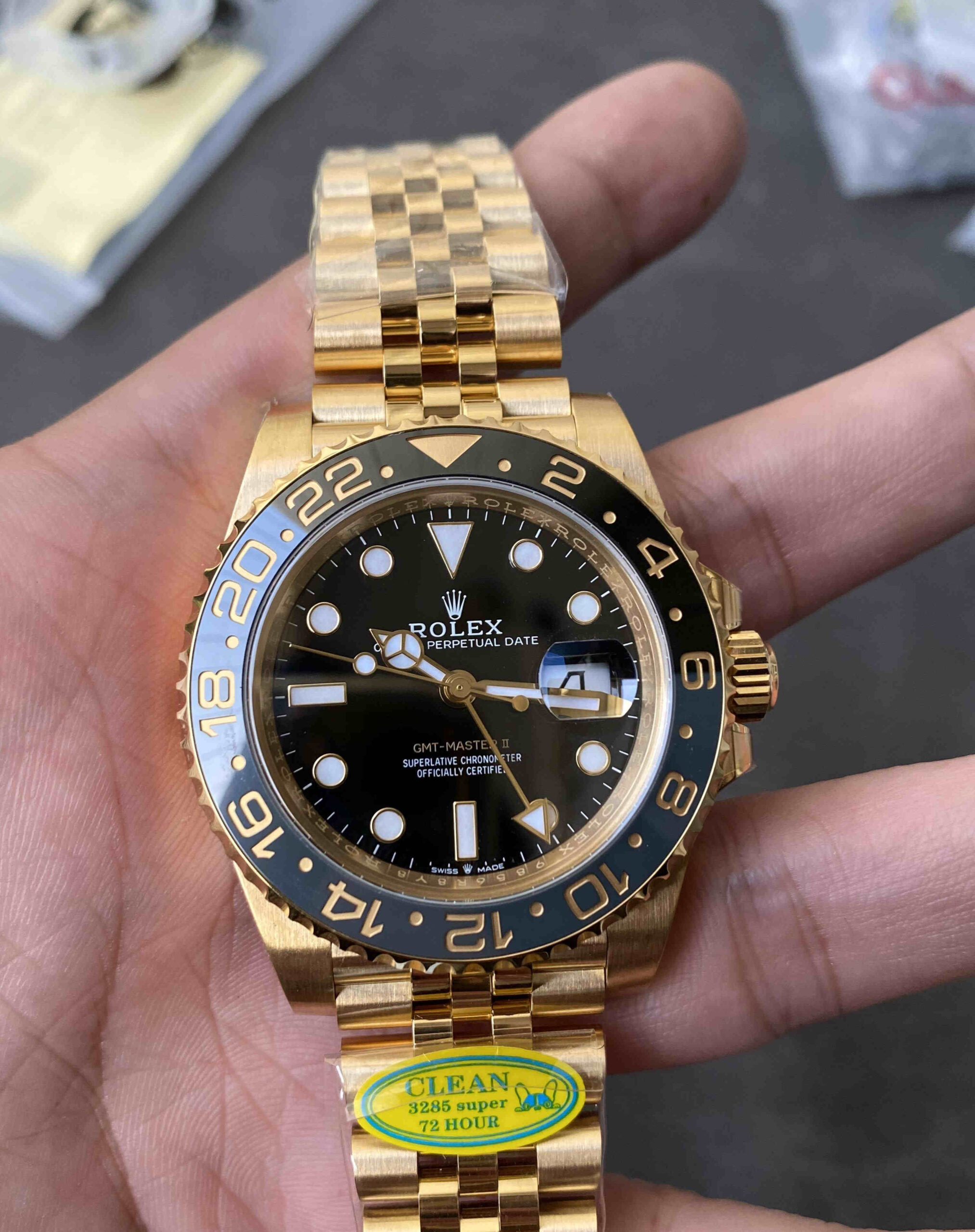 This model is considered one of the best full-gold GMT-Master II replicas in the 2025 market, thanks to: