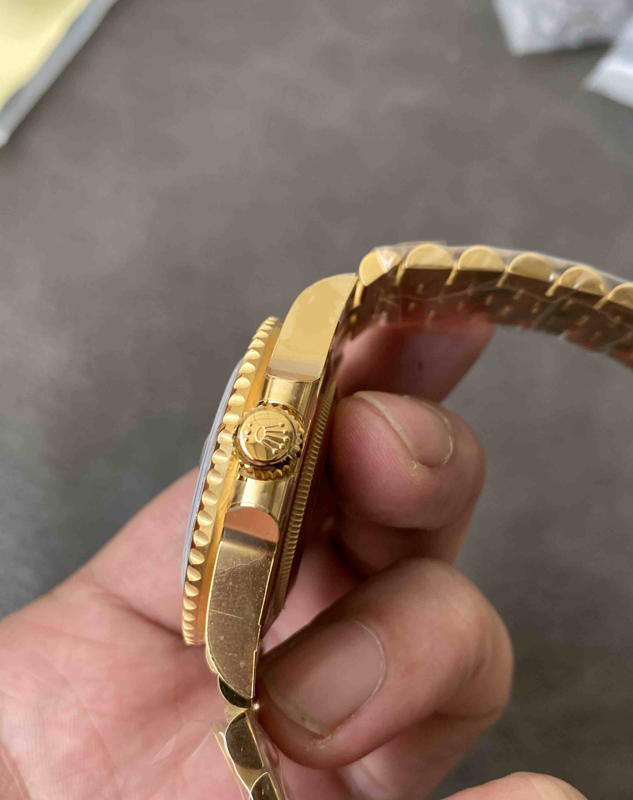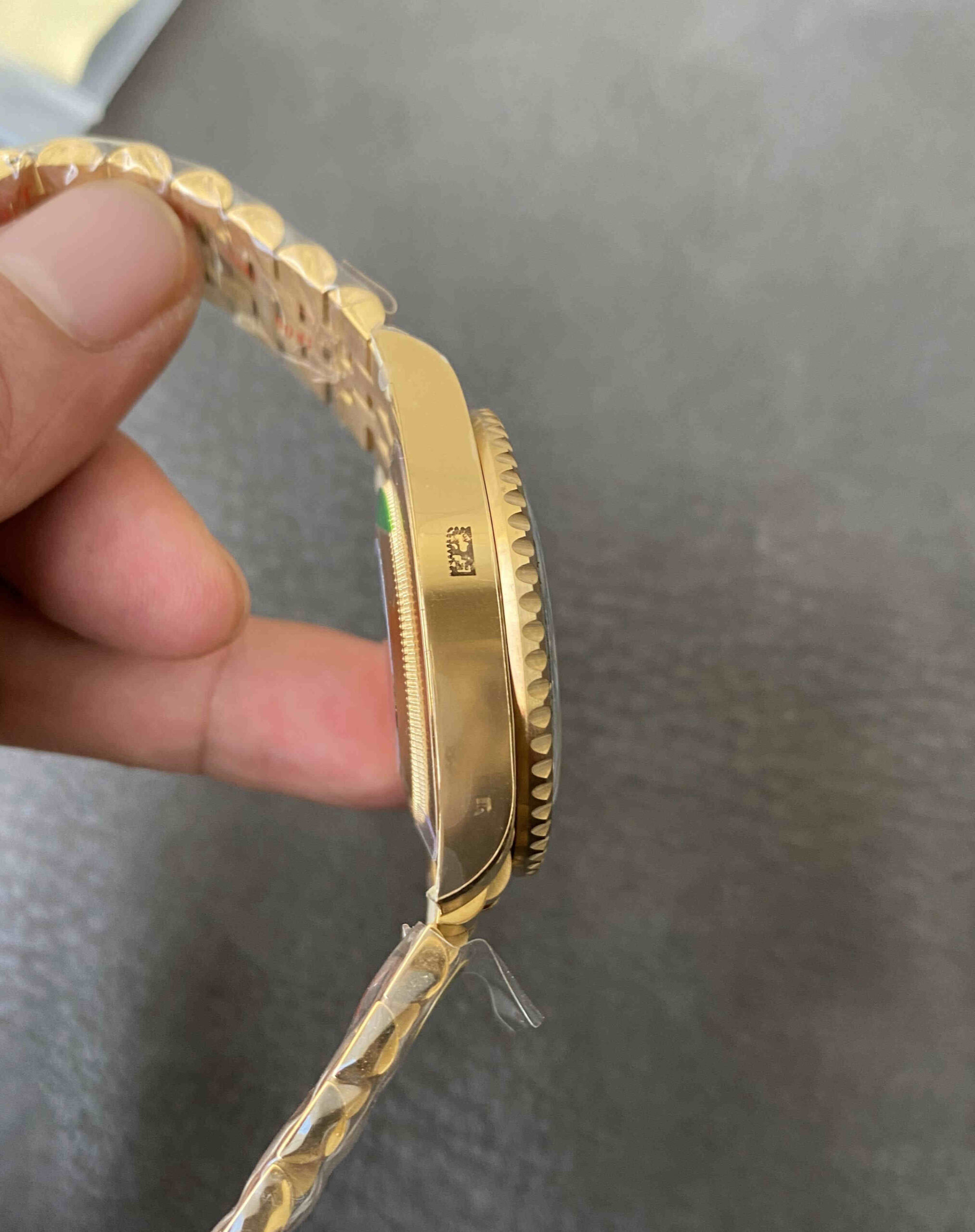 The full-gold Oyster bracelet completes the luxury feel: