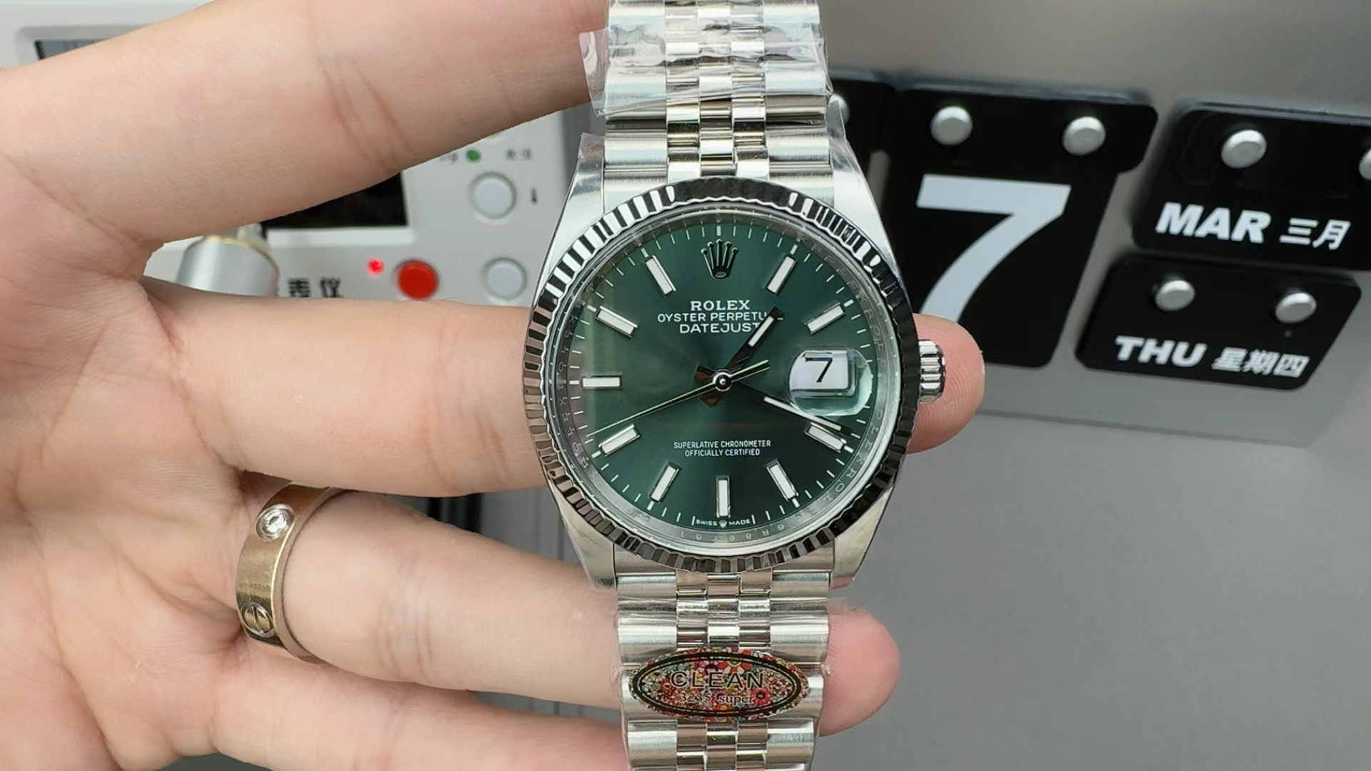The Clean Factory Datejust 36 126234 combines premium craftsmanship, realistic aesthetics, and reliable performance. With its elegant green dial and 36mm classic dimensions, it is an excellent choice for those seeking a high-quality Rolex Datejust replica.