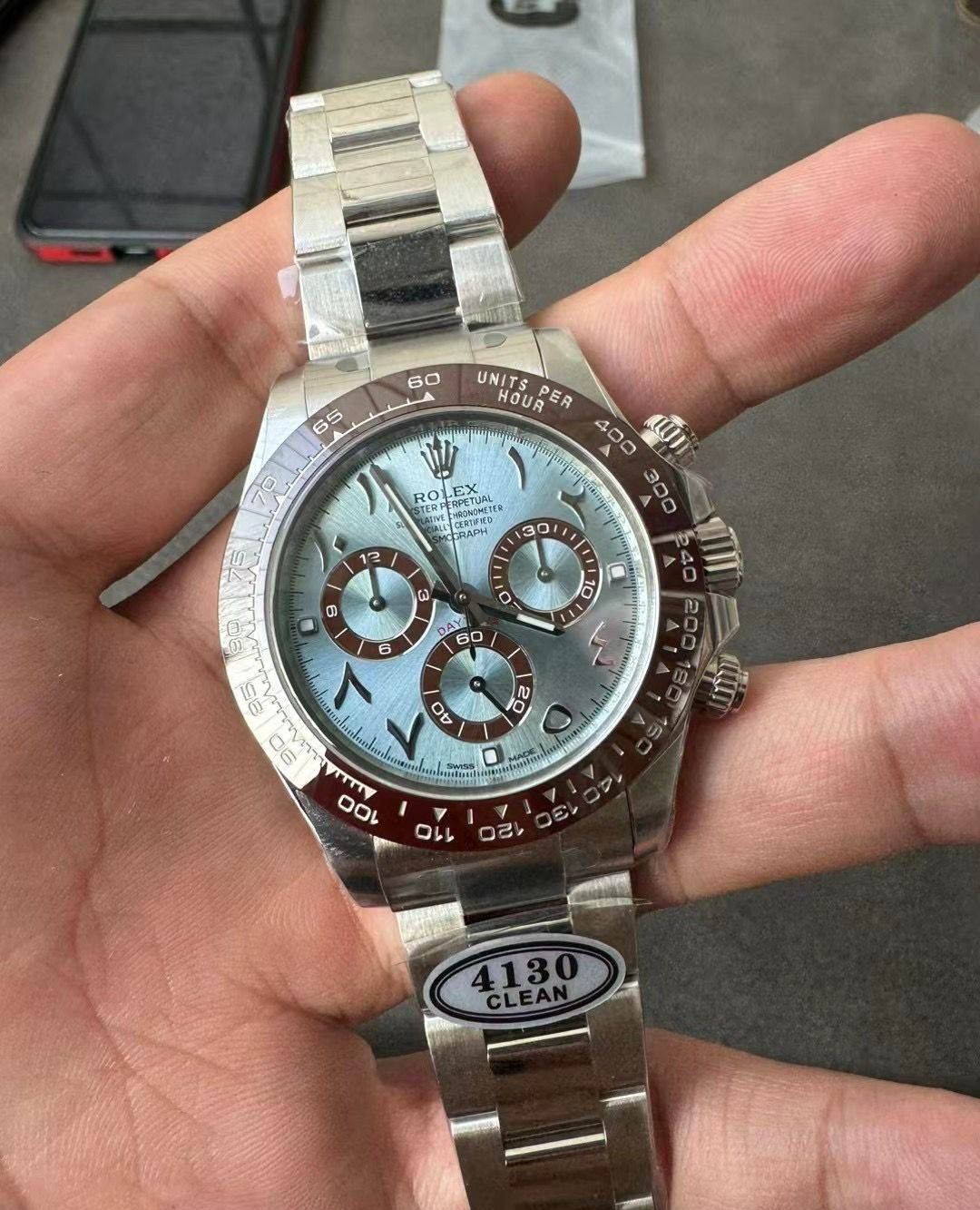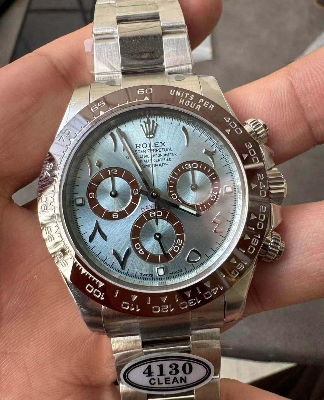 1. What is the Clean Factory Daytona 116506 Middle East Dial?It is a high-end 1:1 replica of the platinum Rolex Daytona, featuring an ice-blue dial with Arabic numerals.