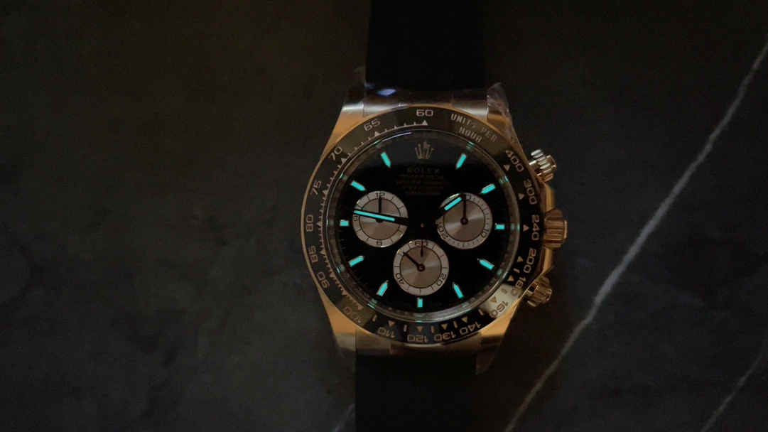 This model features a beautifully crafted Everose Gold case that mirrors the warm, elegant tone of authentic Rolex rose gold. Clean Factory applies premium rose gold wrapping on 904L stainless steel, ensuring durability, shine, and long-term color stability. The soft metallic tone contrasts perfectly with the deep black elements of the watch, making the Daytona 126515LN luxurious yet sporty.