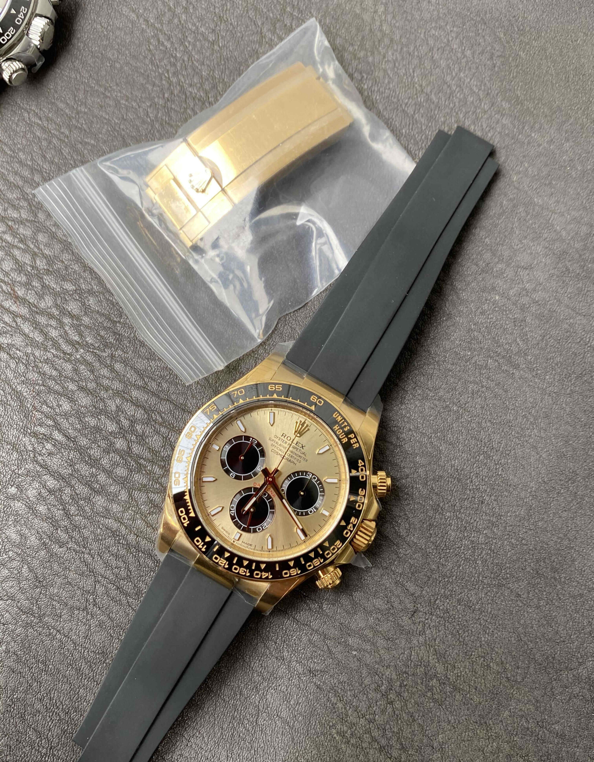 The bracelet provides both style and functionality, making the watch suitable for daily wear while maintaining a high-end appearance. Its design complements the 40mm case, offering a harmonious wrist presence that mirrors the genuine Daytona experience.