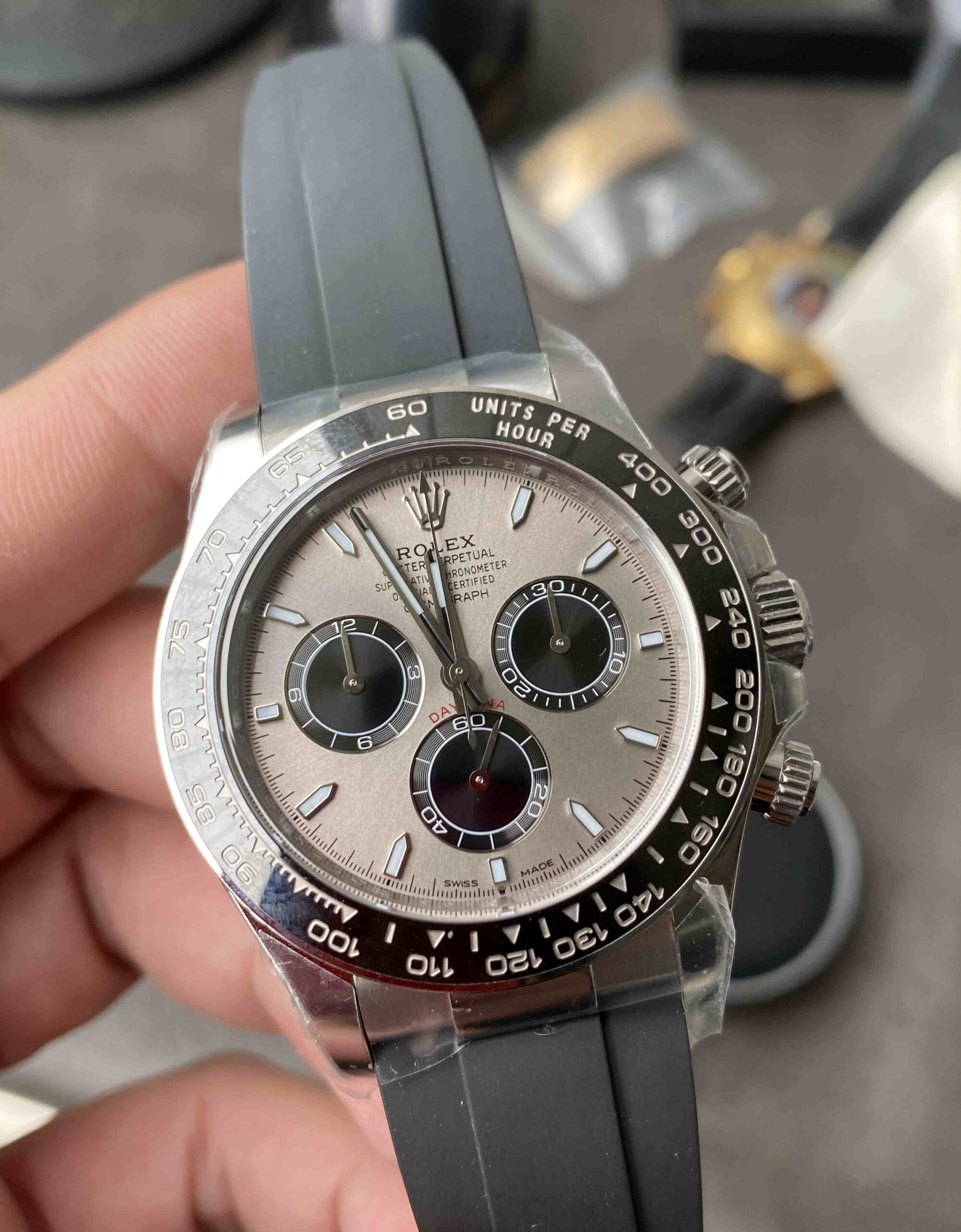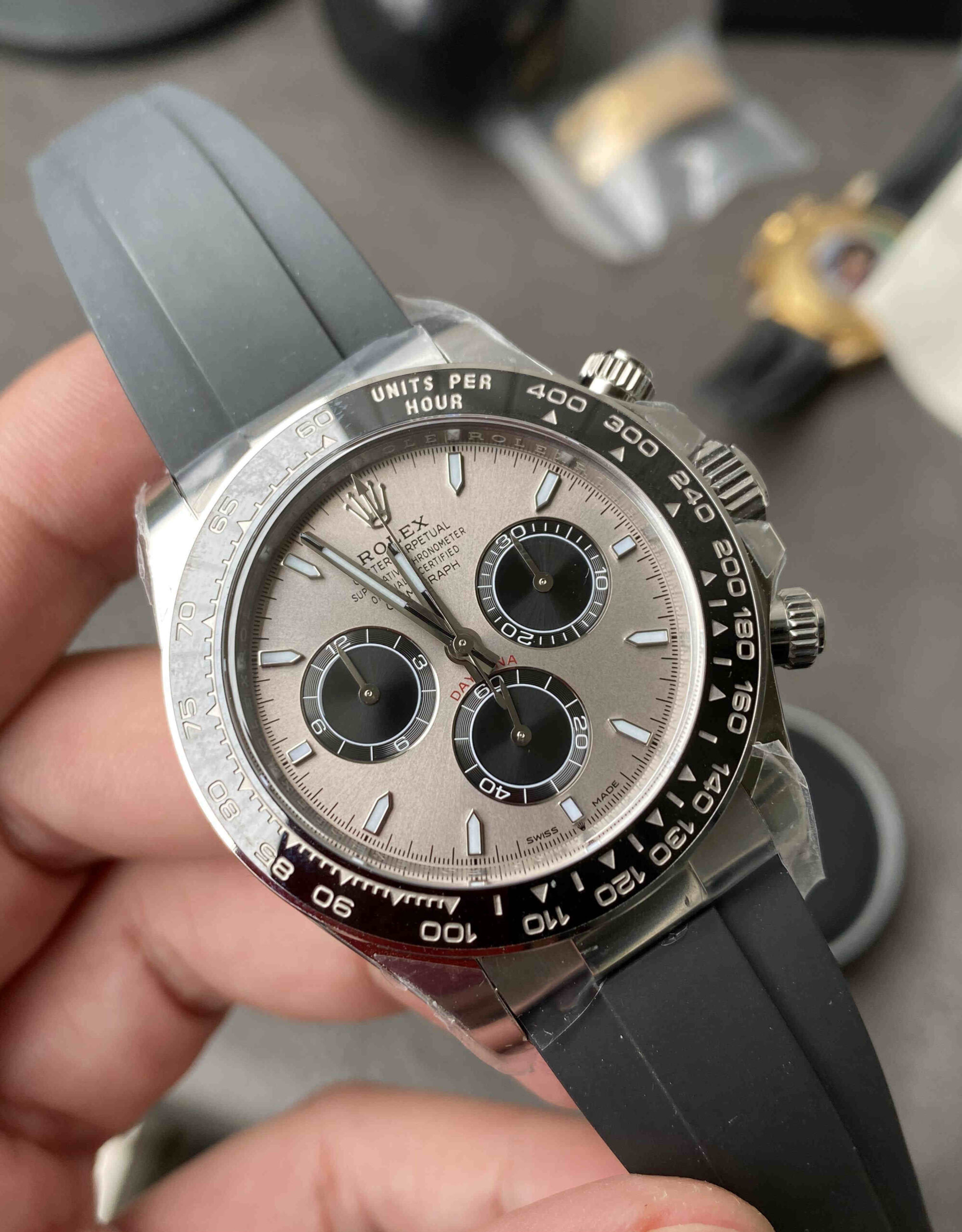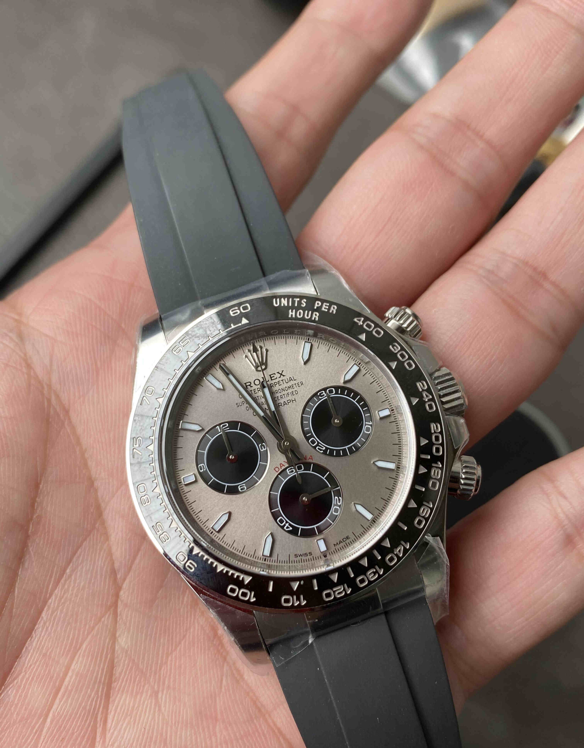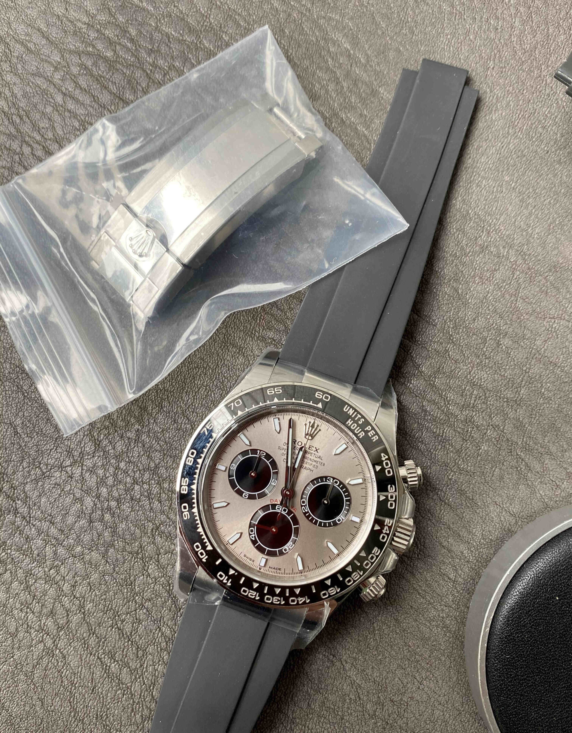 Q2: What is the dial color?A: Cement Grey (水泥灰), a modern and highly popular Daytona dial color.