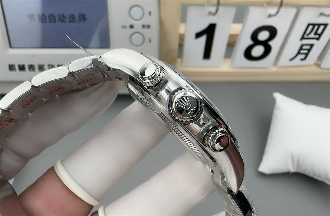 Most replicas fake this function. Clean Factory engineered a real gear train solution. When you run the chronograph, the sub-dial at 9 o’clock rotates once every 24 hours. It is a mechanical marvel unique to this Rolex Daytona Le Mans replica.
