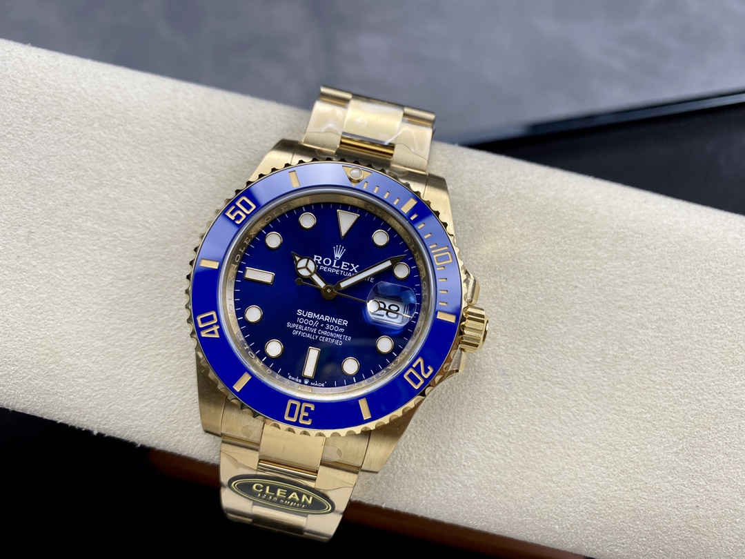The Clean Factory Rolex Submariner 126618LB stands as one of the most prestigious replicas in the Submariner lineup. Clean Factory (C厂) has meticulously recreated this iconic all-gold blue model, mirroring the real Rolex Submariner 126618LB with exceptional craftsmanship and materials.