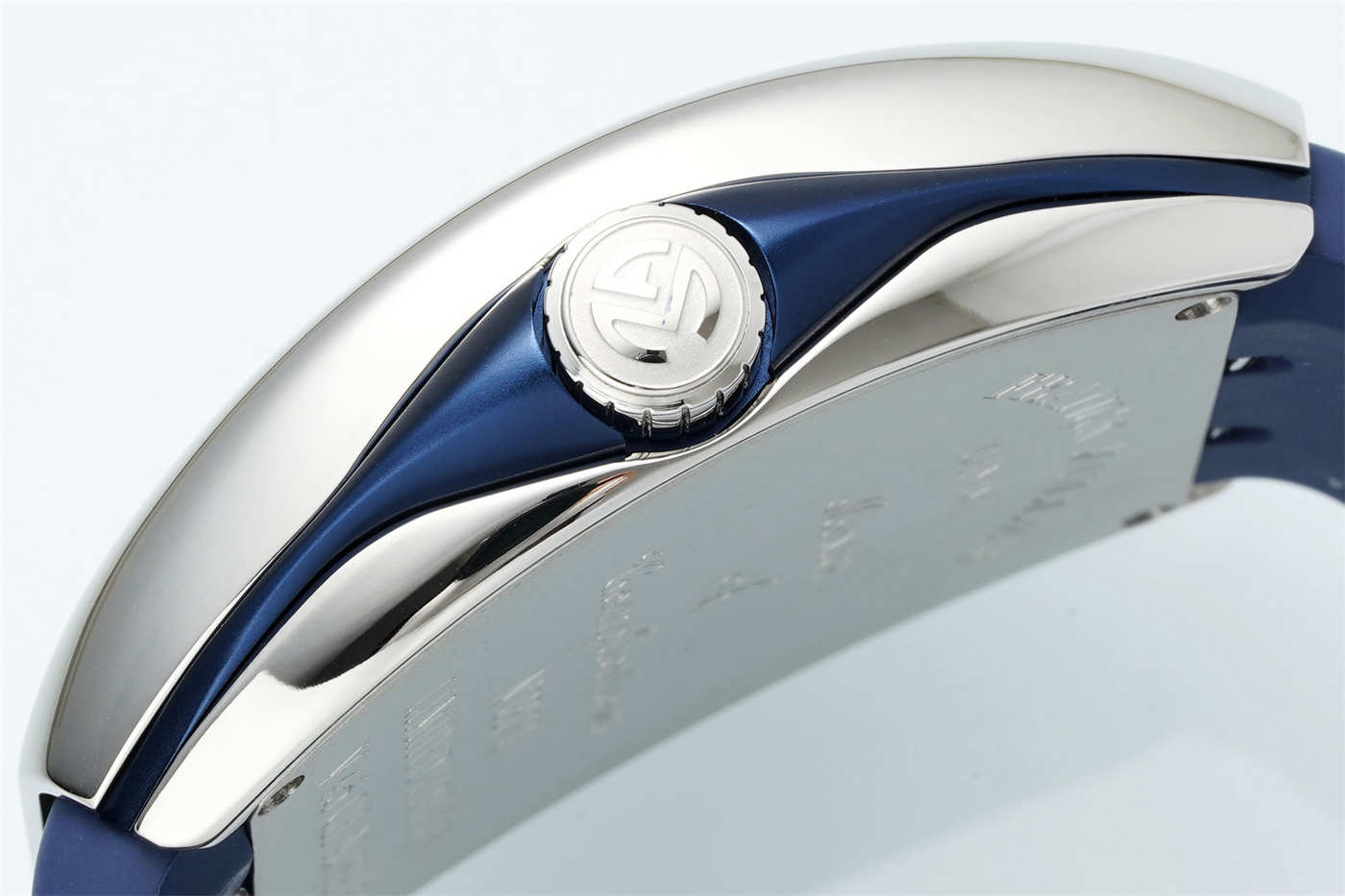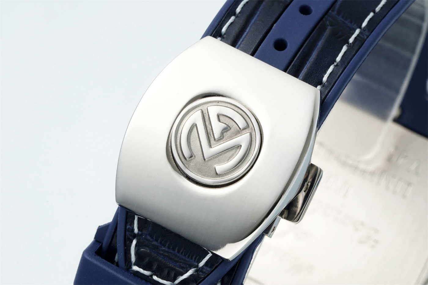The foundation of this elite Vanguard V45 replica is its case. Forged from solid 316L stainless steel, the complex multi-layer “sandwich” construction is perfectly executed, including the signature blue accents on the sides and crown guards. The massively curved sapphire crystal is another critical detail, ground from a solid block to match the original’s exact profile, offering supreme clarity and scratch resistance.