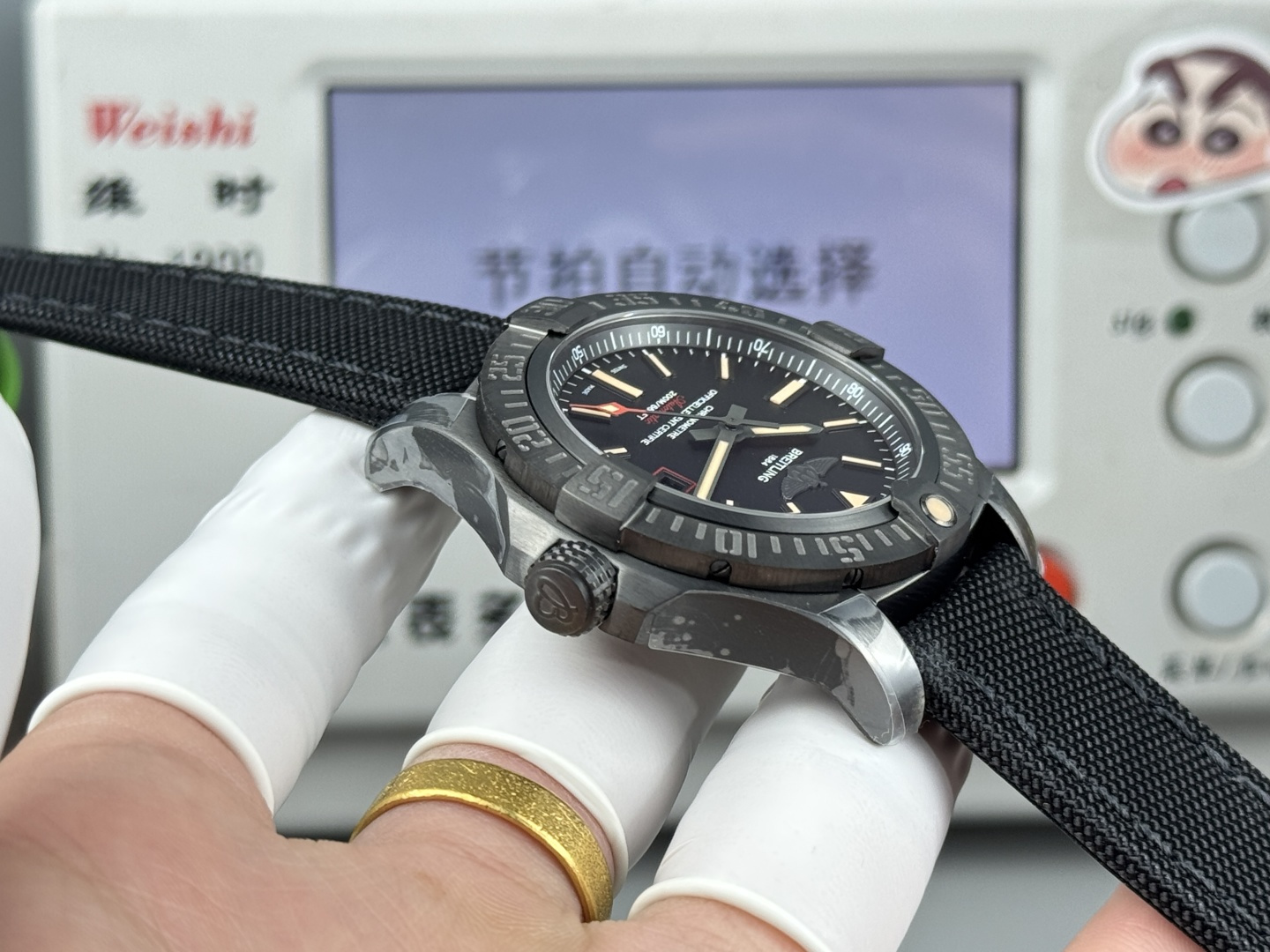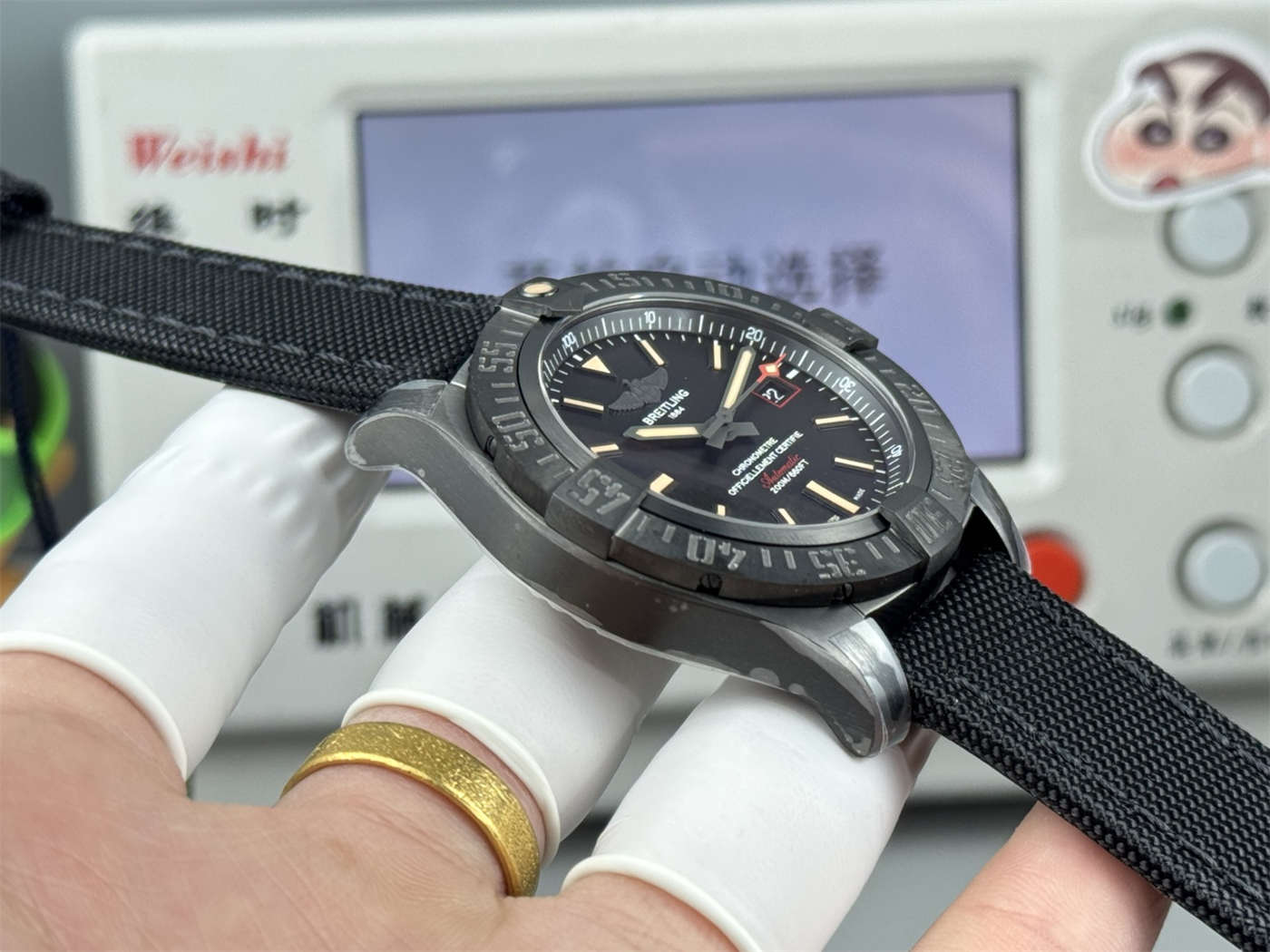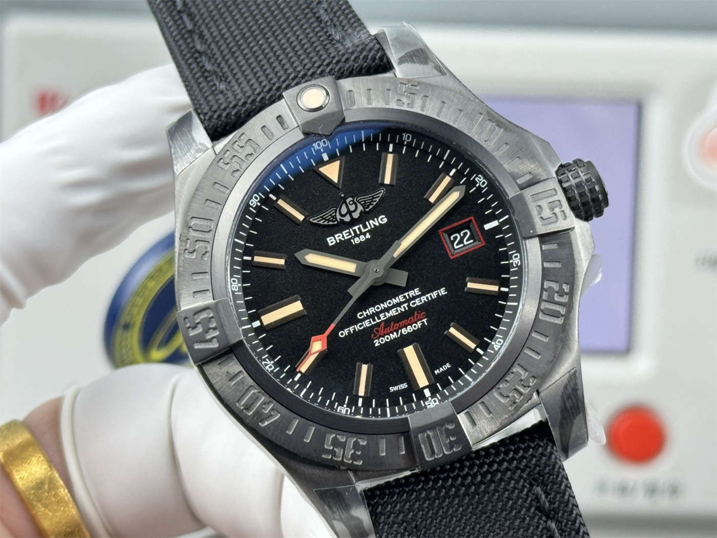 Most replicas use heavy steel painted black. This Breitling Avenger Blackbird replica uses real Titanium. It is incredibly light on the wrist, hypoallergenic, and highly durable. The black coating is not paint; it is a chemical carbon nitriding process that bonds to the metal.