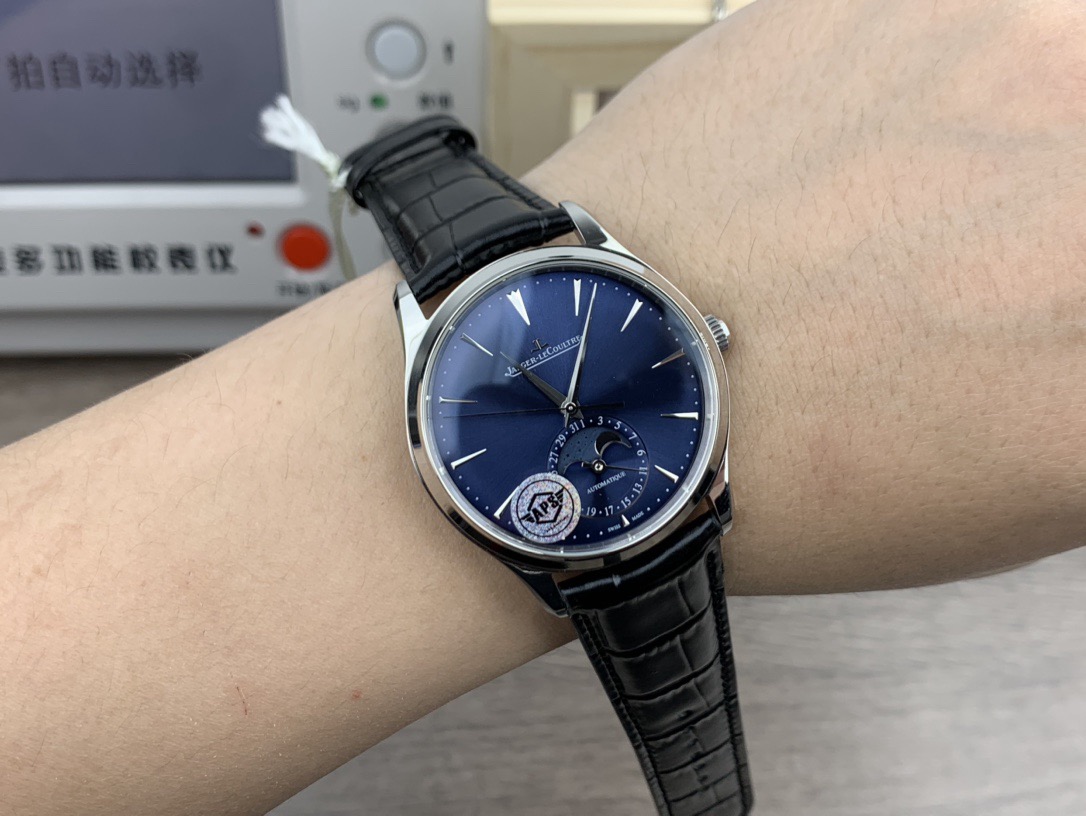 The JLC Moonphase Replica Q1368480 from APS Factory features an elegant ultra-thin profile, a deep blue dial, and a fully functional moonphase complication. Designed for collectors who appreciate classic dress watches, this model combines refined aesthetics with everyday wearability.