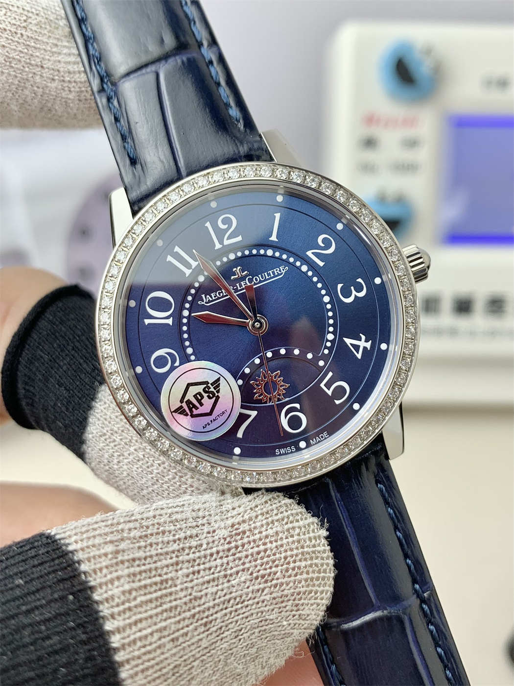 The JLC Rendez Vous Replica 3468480 represents the feminine elegance of Jaeger-LeCoultre’s iconic Rendez-Vous collection. Crafted by APS Factory, this model faithfully recreates the graceful proportions, diamond bezel brilliance, and refined blue dial that define the original ladies’ timepiece.
