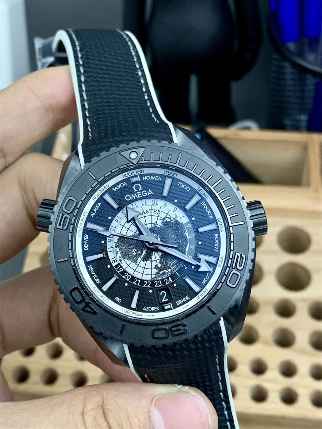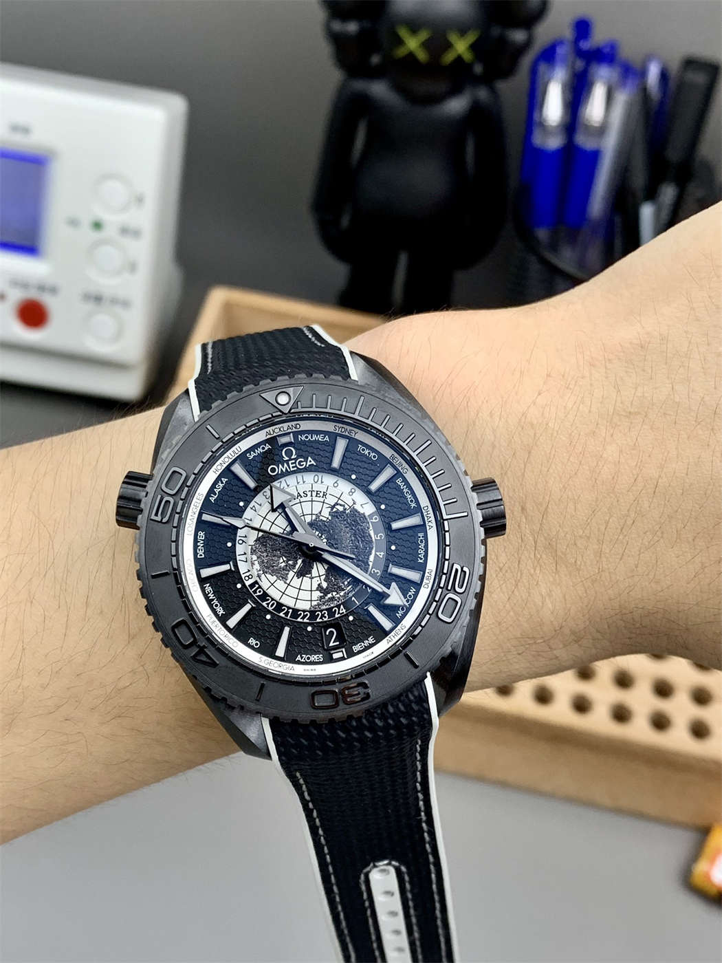 The Omega Seamaster 215 replica from VS Factory is a bold professional dive watch crafted with a full black ceramic case and oversized 45.5mm design. Inspired by the Seamaster Planet Ocean 600M series, this model combines extreme durability, modern aesthetics, and a high-quality automatic movement for serious collectors.