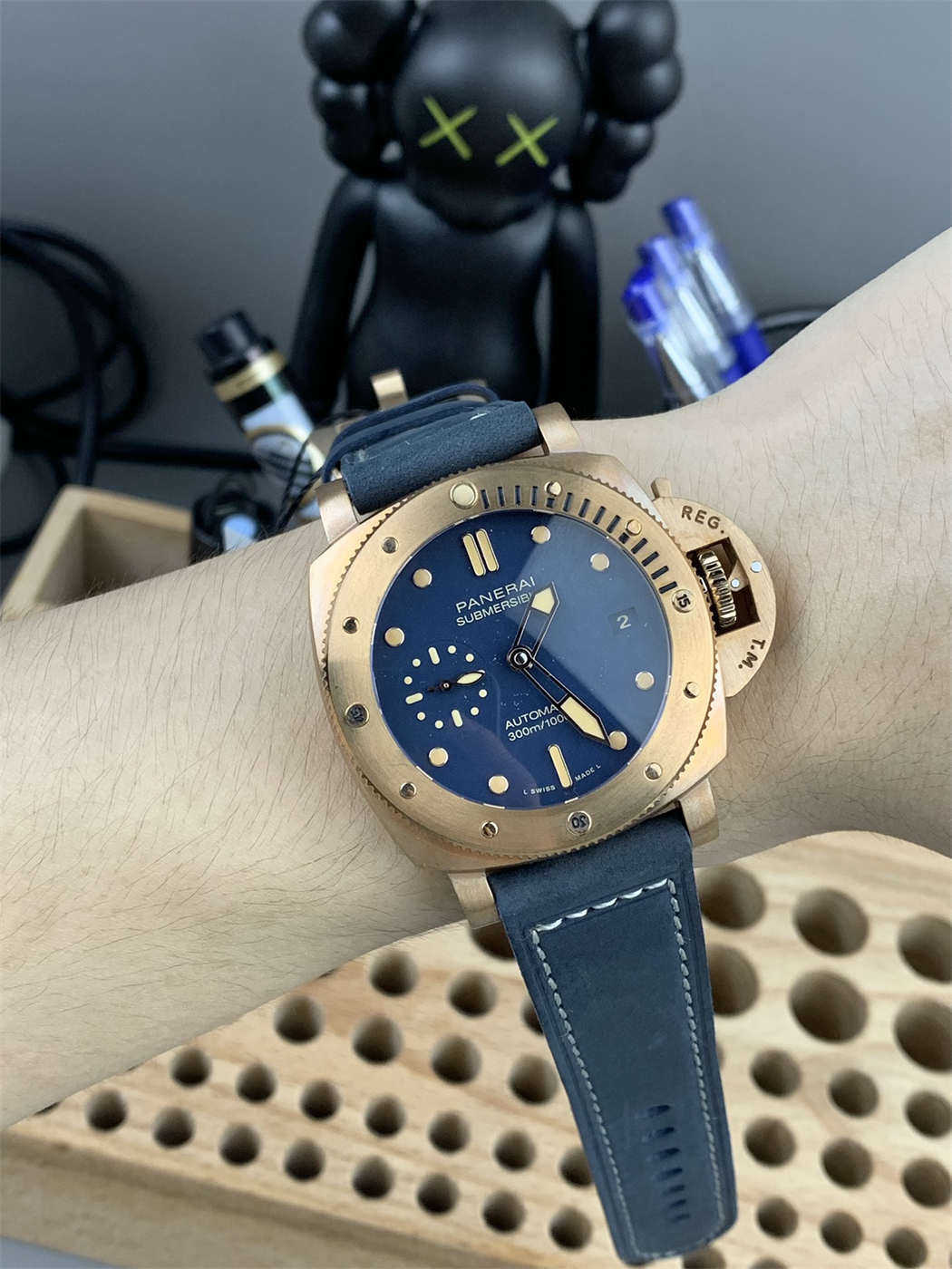 The watch feels solid on the wrist, with the weight and warmth that only a bronze case can deliver.