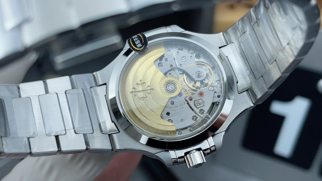 The dial color closely follows the authentic deep blue Nautilus tone, with light-reflective variations depending on lighting.