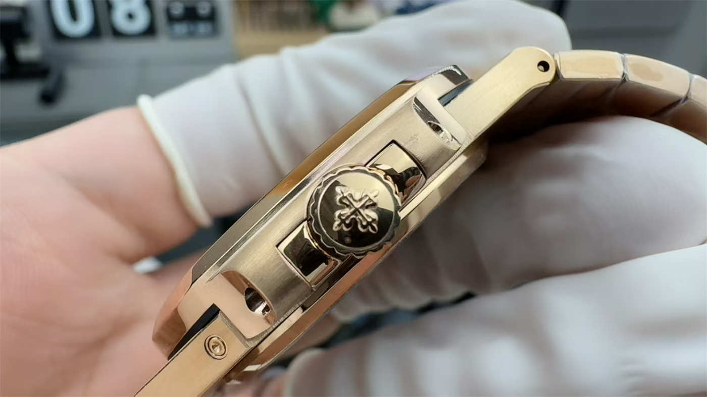 The Patek Philippe Nautilus 5712/1R replica represents the most luxurious execution of the 5712 design. Unlike leather-strap variants, the 5712/1R-001 features a fully integrated rose gold bracelet, enhancing both weight balance and visual harmony.