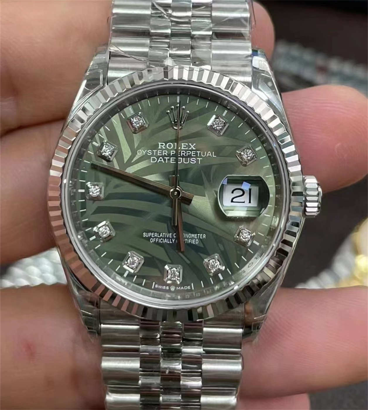 Q1: Is the Rolex Datejust 36 palm dial diamond replica suitable for everyday wear?Yes. The 36mm size and Oystersteel construction make it comfortable and practical for daily use.