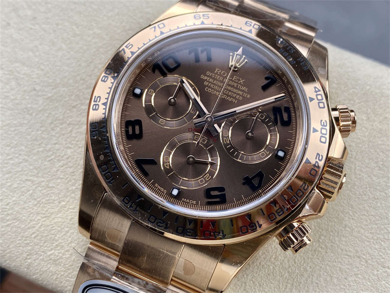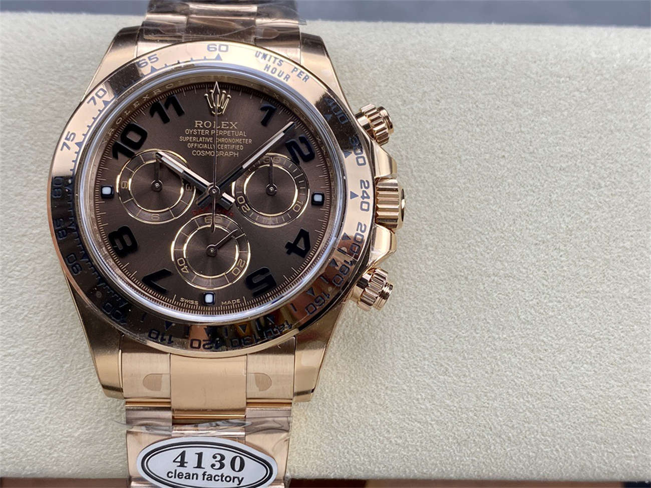 Inside this Rolex Daytona Everose Gold is the highly regarded Dandong 4130 super clone movement, widely considered the best Daytona replica movement available.