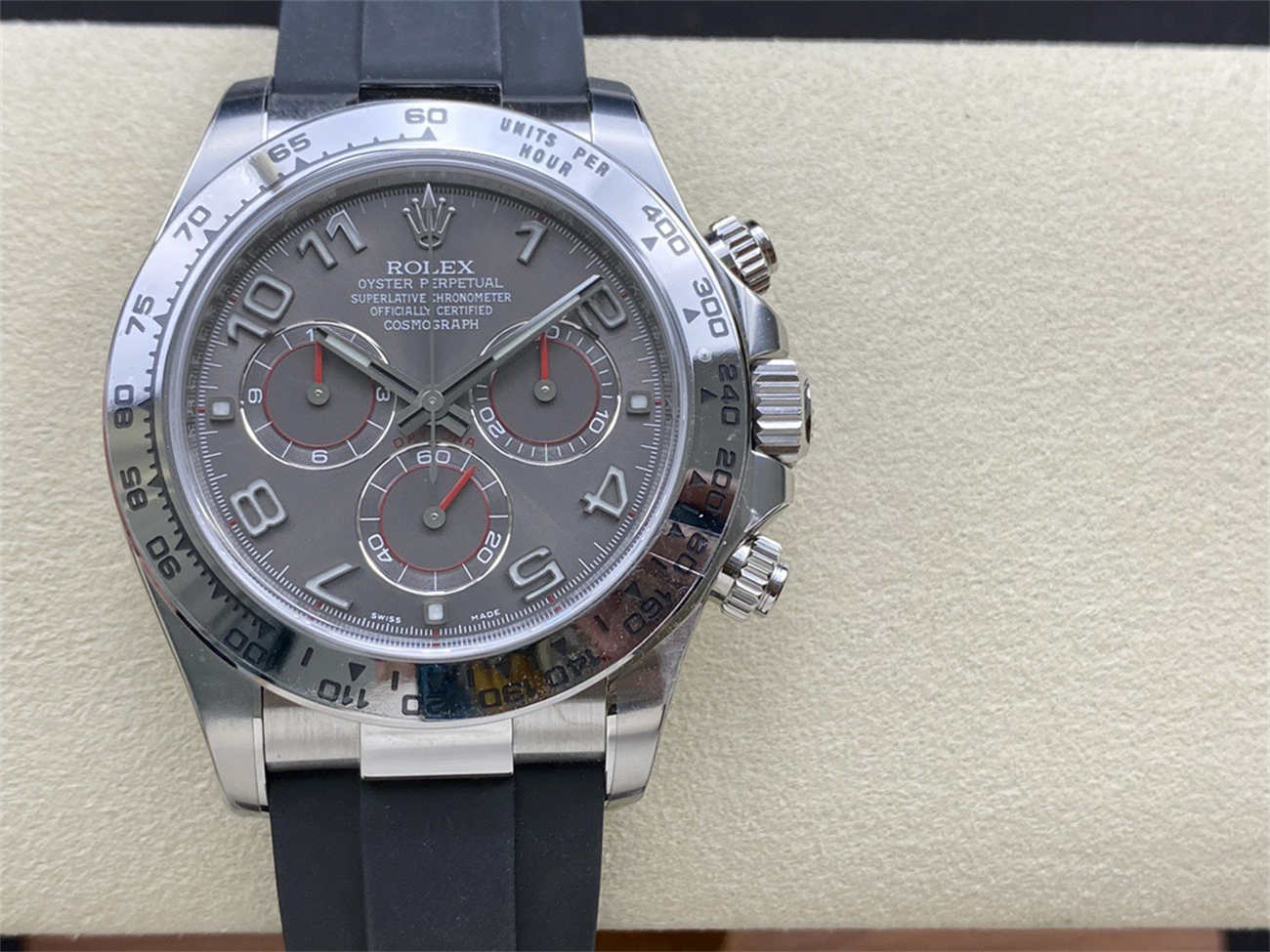 Inside this Rolex Daytona Grey Dial is a high-quality chronograph movement designed to replicate the layout and function of the original. The chronograph runs smoothly, with responsive pushers and stable timekeeping for daily wear.