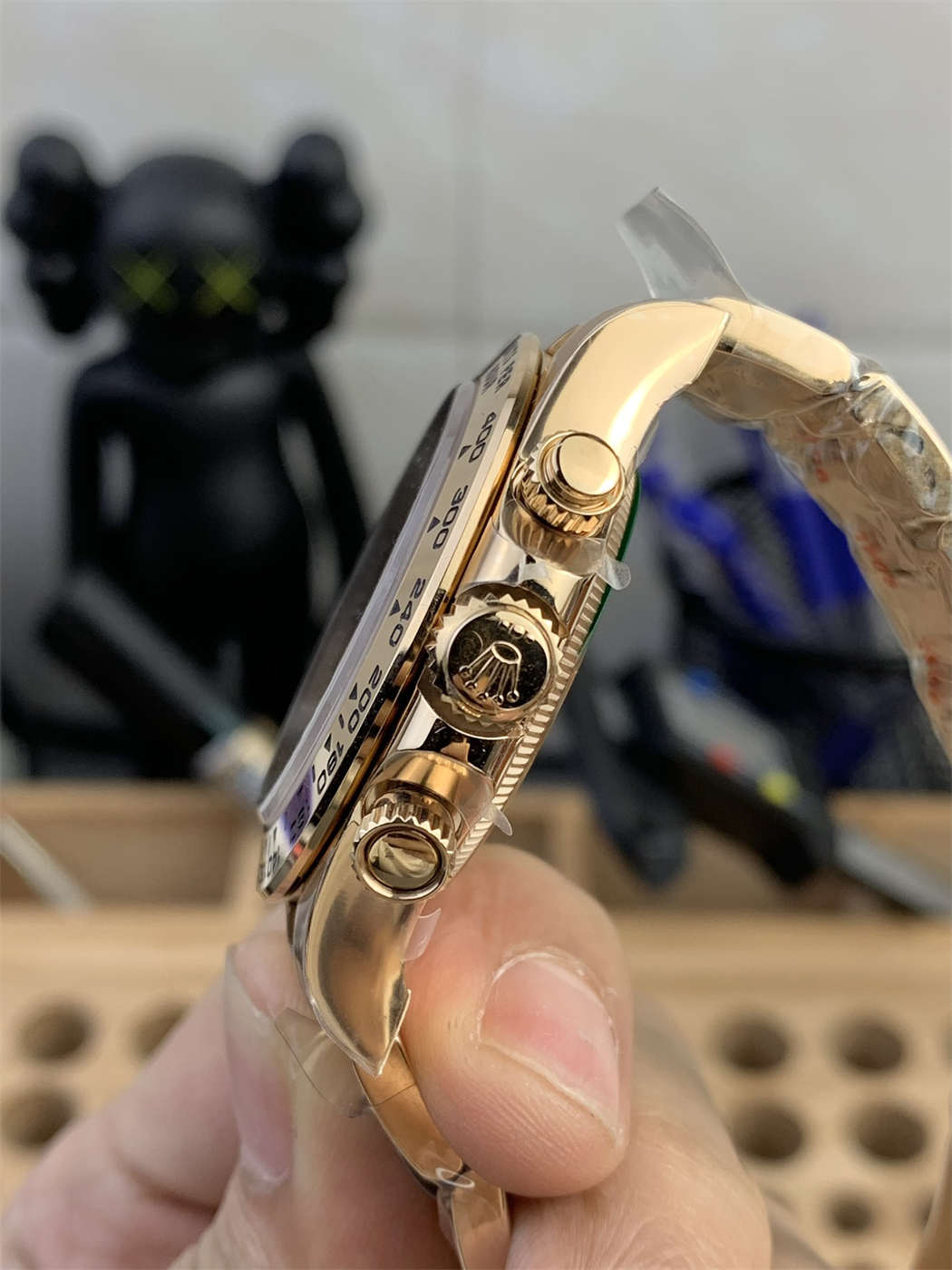 Q: How close is this Rolex Daytona rose gold replica to the original?A: Visually and mechanically, it is considered one of the most accurate Daytona replicas available today.