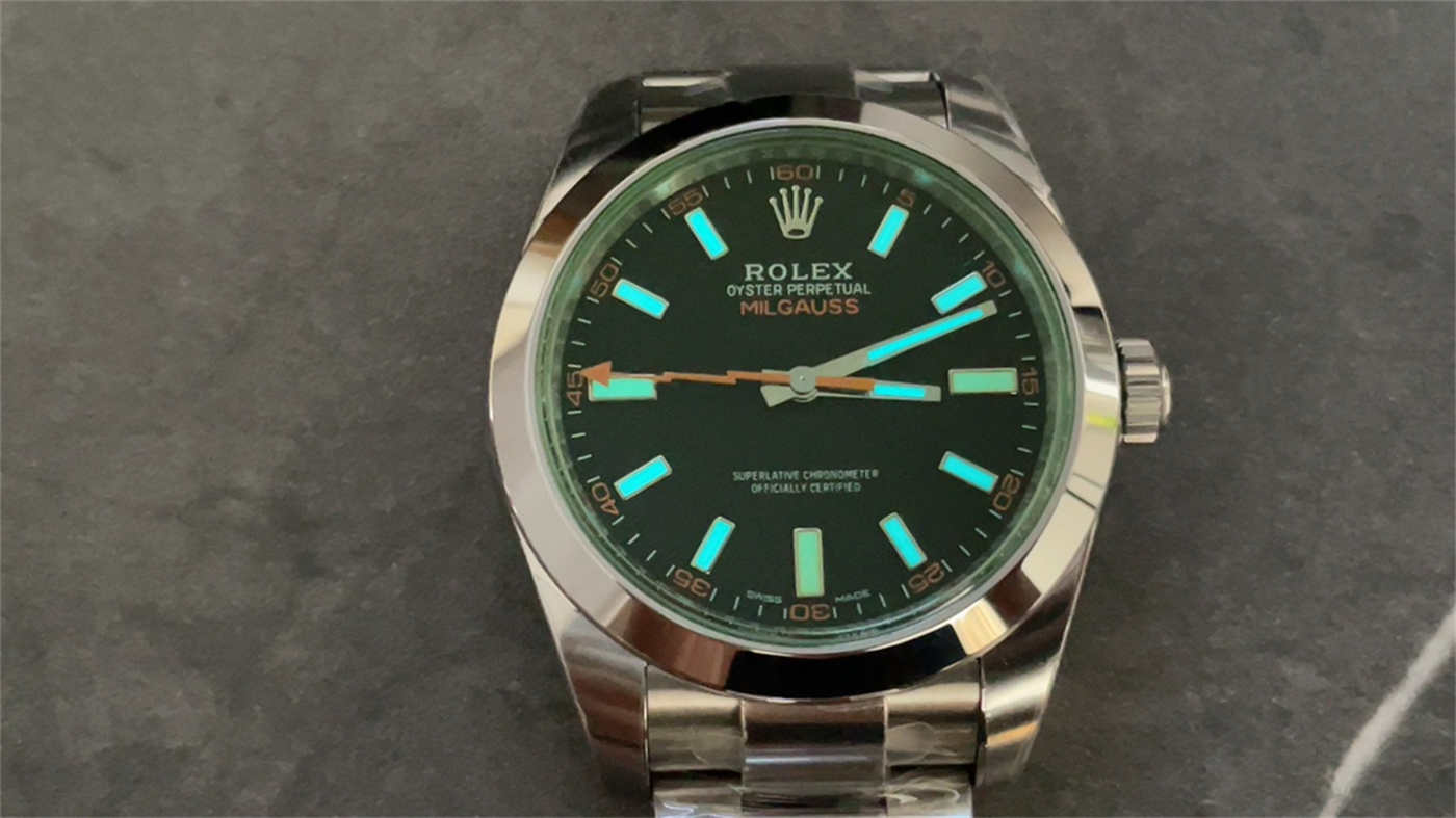 Rolex Milgauss 116400GV “Green Glass” – 904L Steel [Real Green Sapphire]