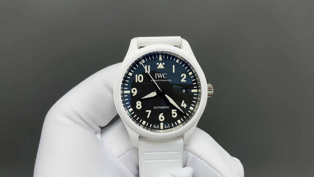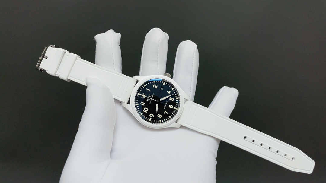 With a 41mm white ceramic case, scratch-resistant sapphire crystal, and an automatic mechanical movement, the watch maintains a modern yet functional pilot-watch personality. The V7 Factory is known for faithful recreations, and the IW328104 is one of the most accurate versions currently available.