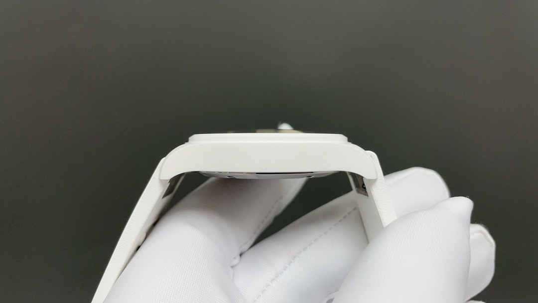 The V7 case measures 41mm × 11mm, staying true to the original proportions. White ceramic provides a premium tactile feel, exceptional durability, and natural scratch-resistance.