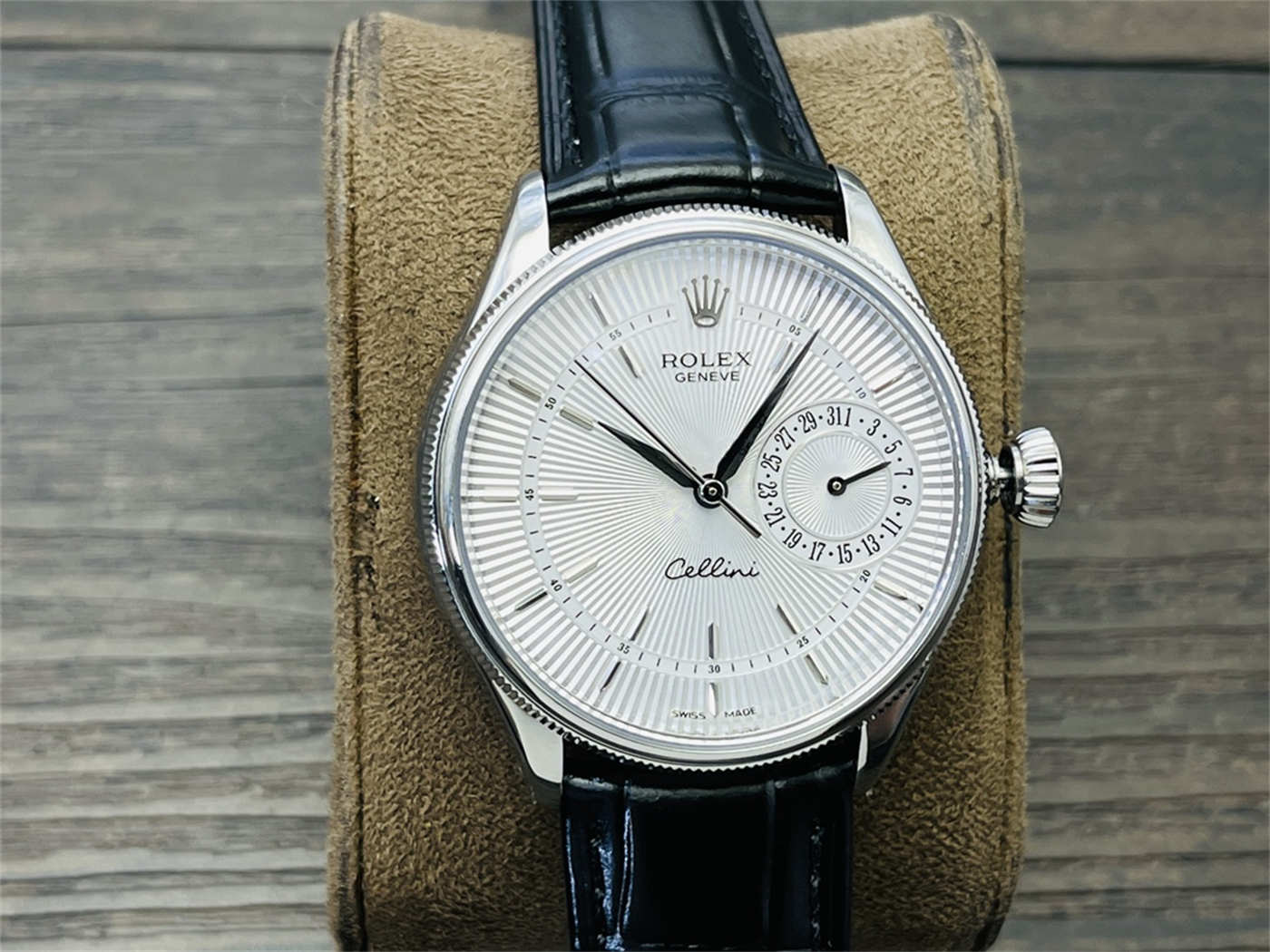 Is this an original Rolex watch?No. This is a VR Factory Rolex Cellini White Dial replica, created to replicate the appearance and wearing experience of the original reference 50519.