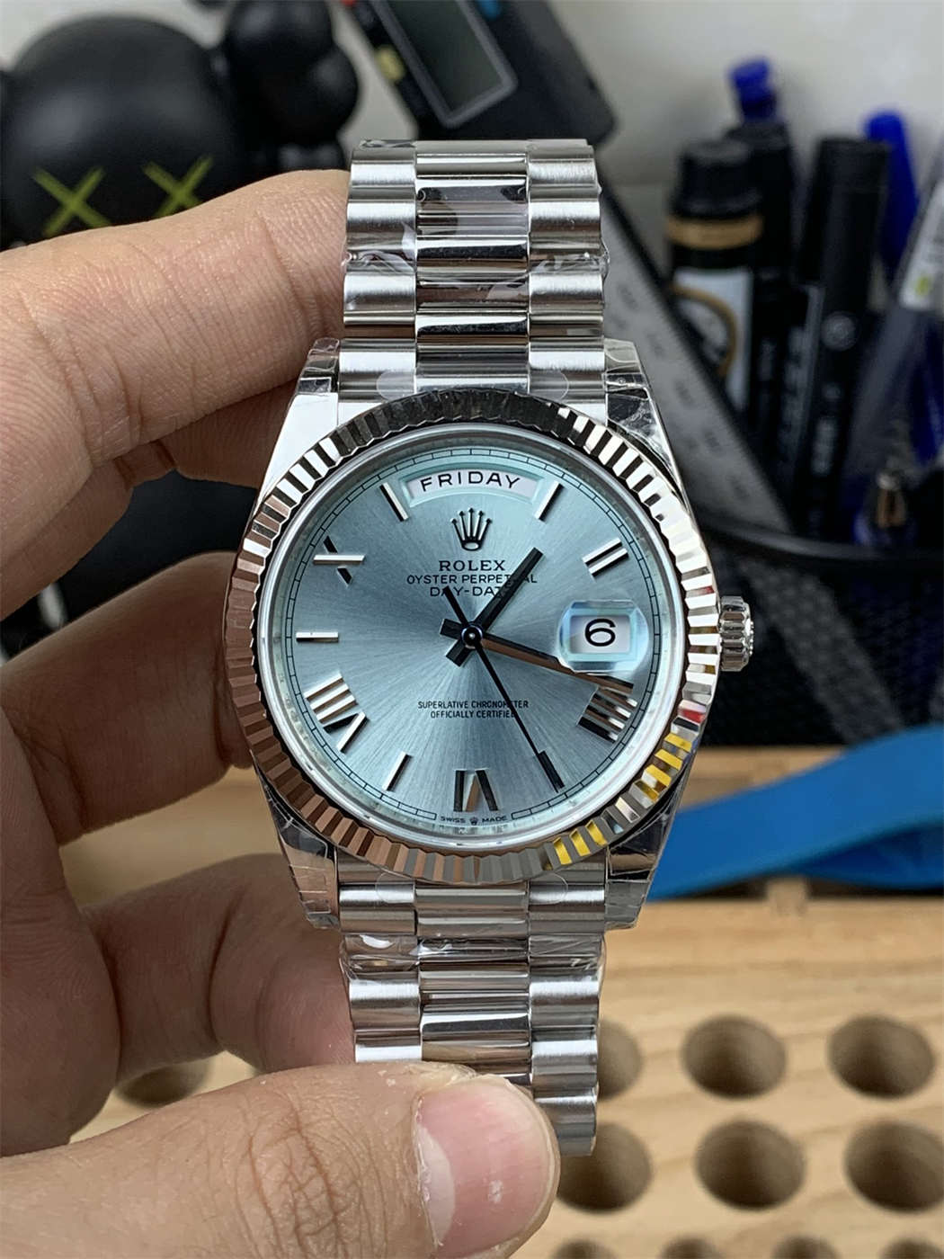 This model uses the correct 40mm case size, matching the modern Day-Date 40 specification.
