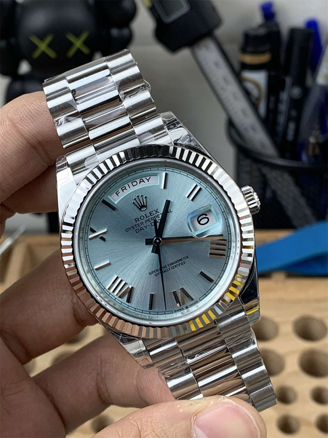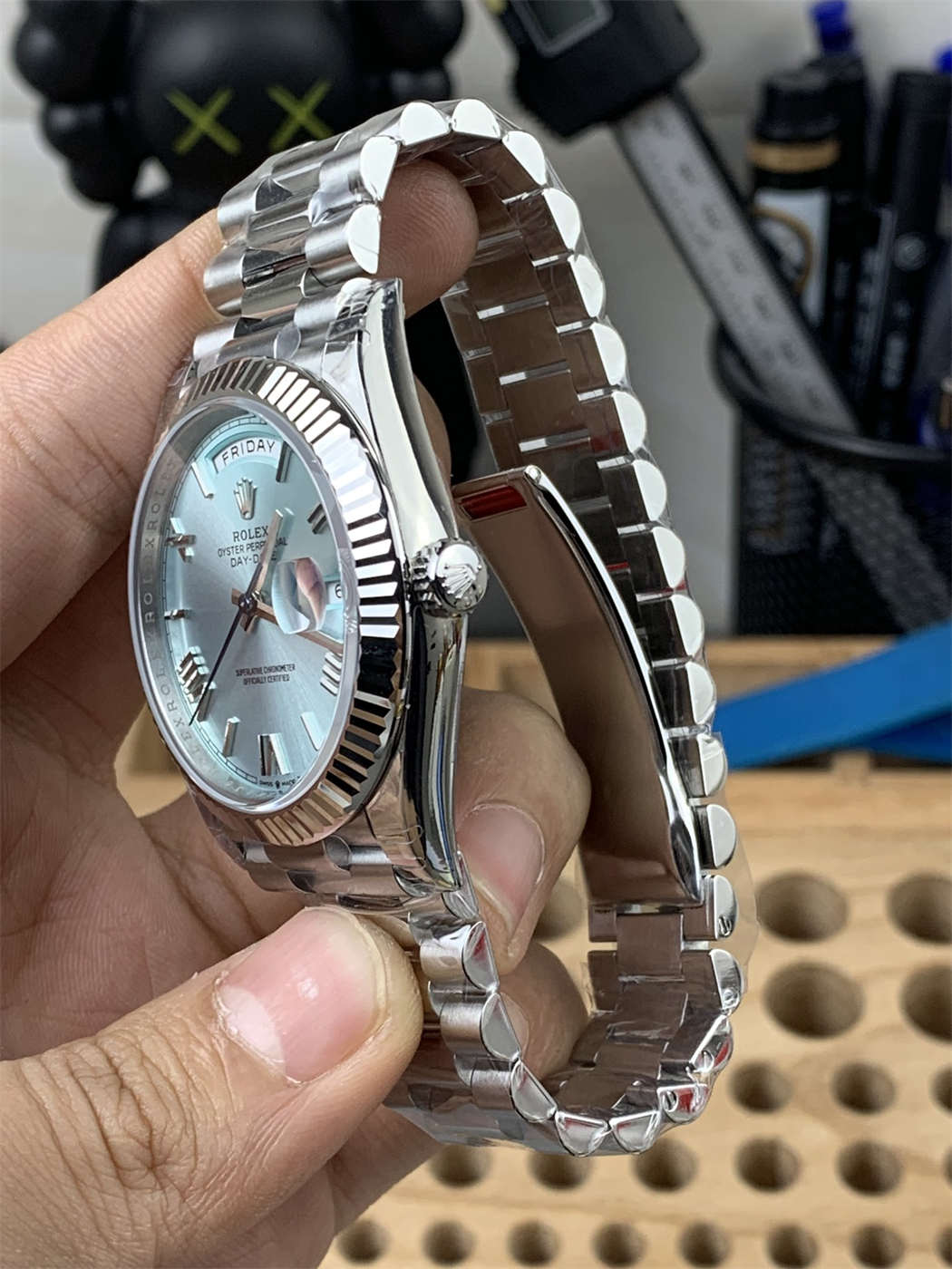 The VS Factory Platinum Day-Date Ice Blue Dial Replica recreates this iconic design with exceptional accuracy. From the dial color to the case proportions and bracelet structure, every detail is carefully refined to deliver a watch that looks, feels, and wears like a true platinum Day-Date.