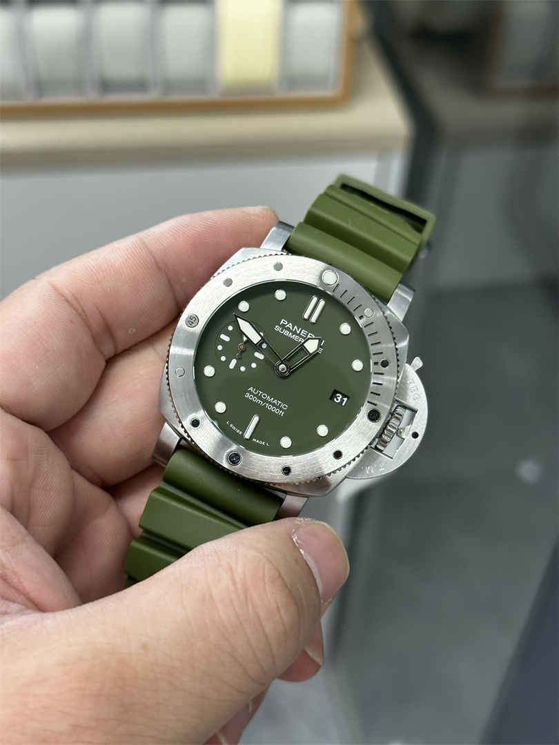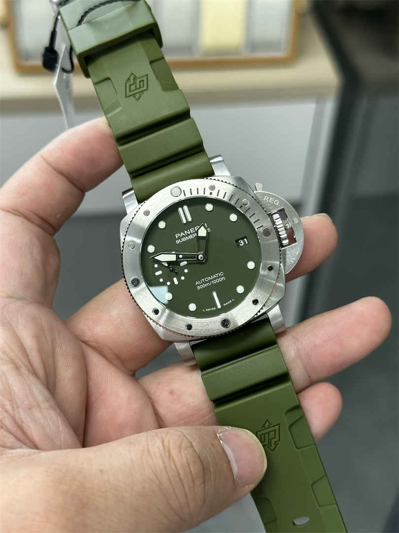 The VSF PAM1055 features a matte military-green dial, perfectly matching the original Panerai Submersible aesthetic—clean, tactical, and highly recognizable.