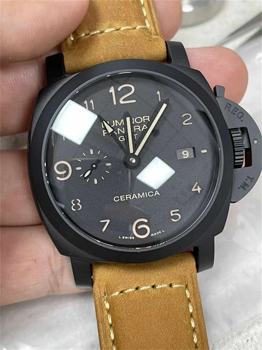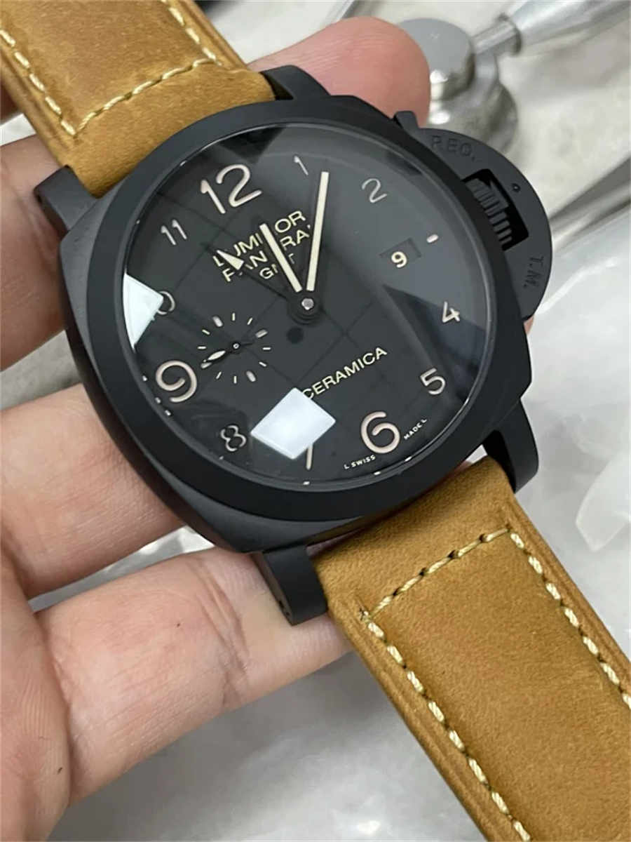 This ceramic case sets the VSF PAM441 apart from steel models, offering a distinctive look that calls attention.