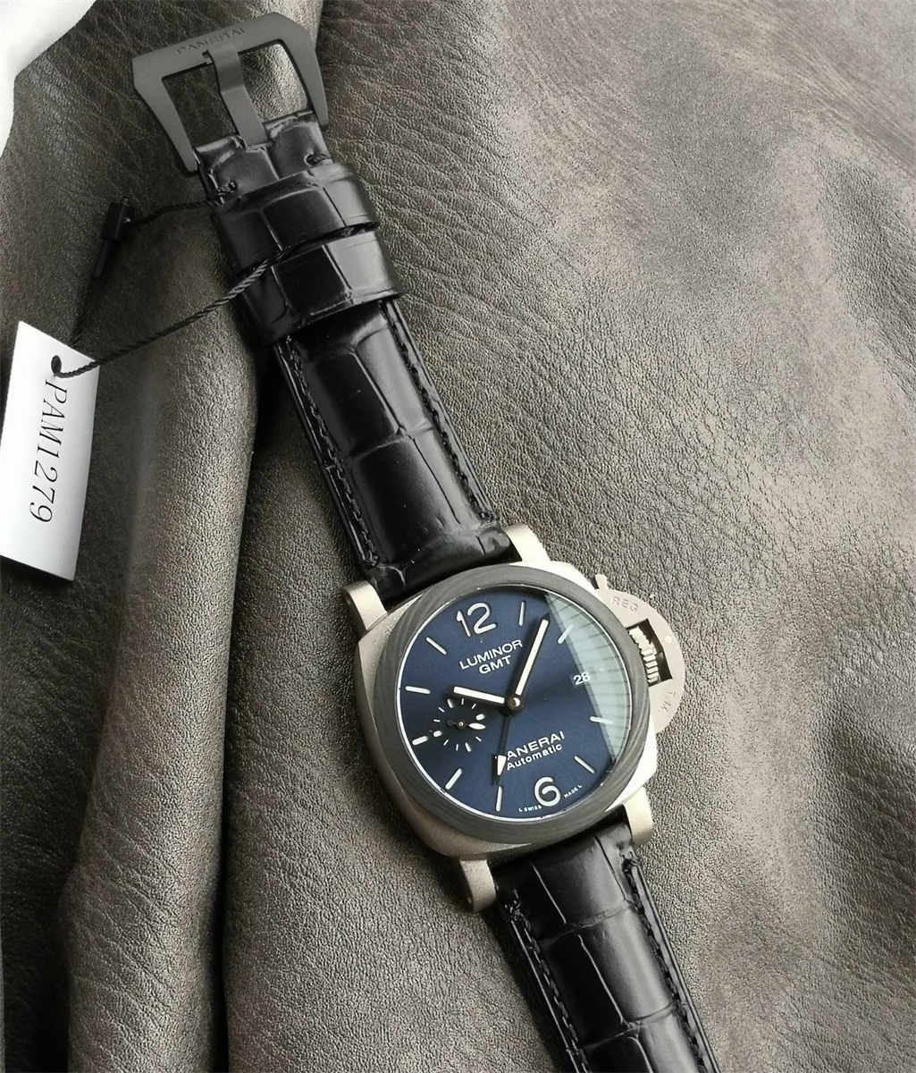 The VSF Panerai PAM01279 is one of the most refined and technically accurate titanium Luminor GMT replicas ever released by VS Factory. Built upon the specifications of the genuine Panerai model, this watch combines a lightweight titanium case, a Carbotech carbon bezel, and a beautifully executed blue sunburst dial to deliver a premium wearing experience. VSF, widely regarded as one of the best replica watch manufacturers, has once again delivered a model that stands at the top of the market in terms of realism, finishing, and movement accuracy.